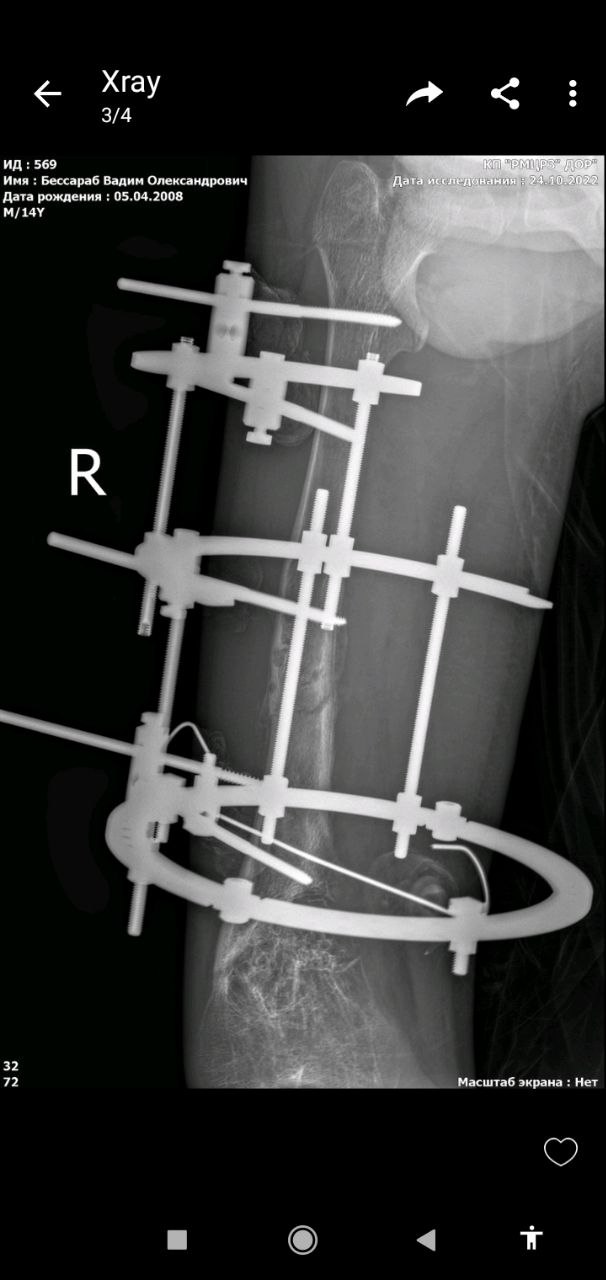 І військові знову прийшли на допомогу: Командувач Об’єднаних Сил ЗСУ генерал-лейтенант Сергій Наєв безпосередньо допоміг у лікуванні Вадима — забезпечив придбання апарату зовнішньої фіксації для корекції деформації стегнової кістки.