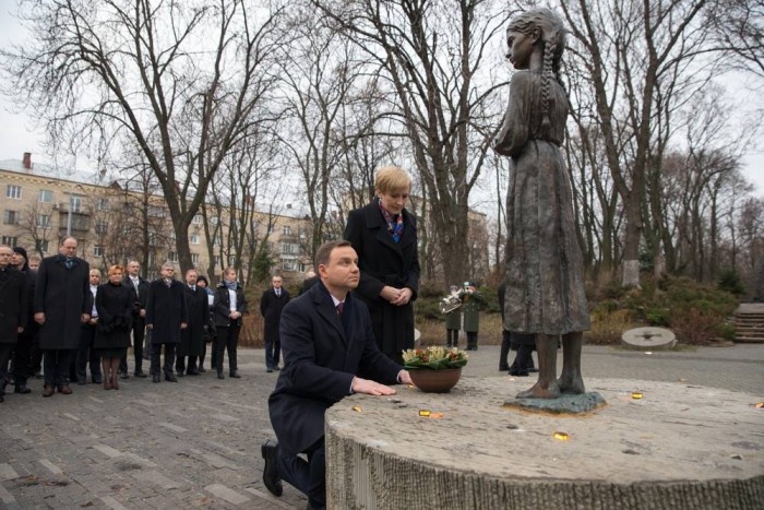 — Звичайно: навіть президент-втікач, який, як ми знаємо, вирізнявся «особливим ставленням» до Голодомору 1932-1933 років, не насмілився скасувати цієї вимоги!.. За ці роки у нашому Музеї побували десятки лідерів інших країн та закордонних делегацій. З різних континентів. Багатьом моїм колегам запам’яталися відвідини президента Польщі Анджея Дуди з дружиною Агатою (до речі, пан Дуда був у Музеї кілька разів). Він залишив запис у книзі почесних гостей музею: «Не існує слів, які б могли передати скорботу і біль з приводу злочину Голодомору! Схиляємо голови перед жертвами тоталітарного режиму в Україні — перед жертвою тихою й безборонною», поклав квіти до композиції «Гірка пам’ять дитинства», запалив свічку на «Вівтарі пам’яті» та вдарив у Дзвін пам`яті. А ще — став на коліна перед скульптурою дівчинки і помолився, чим розчулив усіх присутніх!..