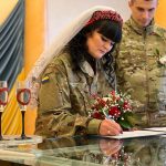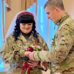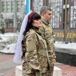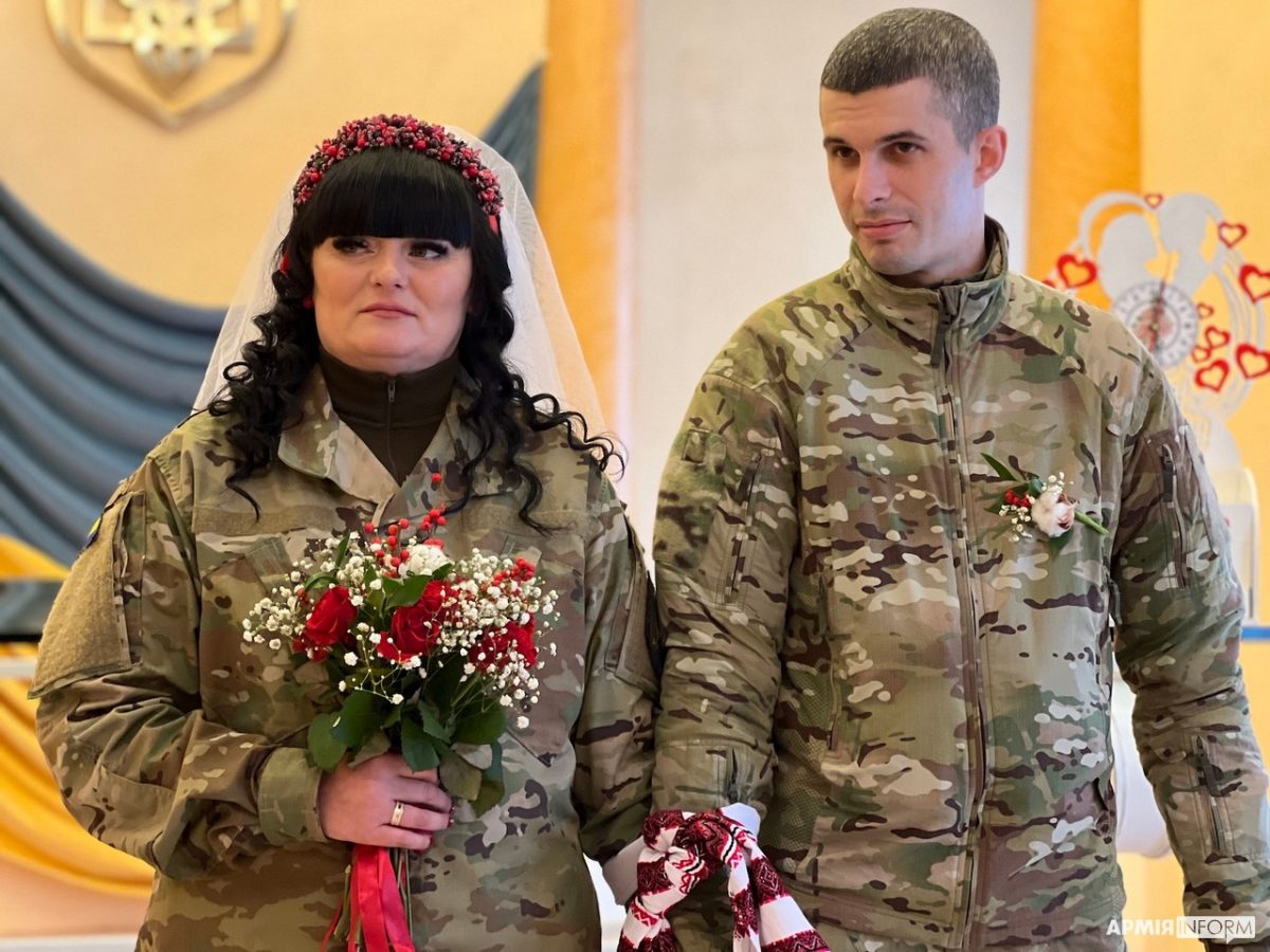 — Імена молодят — це імена князя Олега та княгині Ольги. І от наречена — це дівчина-вогонь. Ось такі дівчата становлять найкращу жіночу частину нашої армії. І такі дівчата пройдуть парадом Перемоги, і ми будемо пишатися і розповідати нашим дітям, що в нашій країні найкращі дівчата, — говорить Олена.