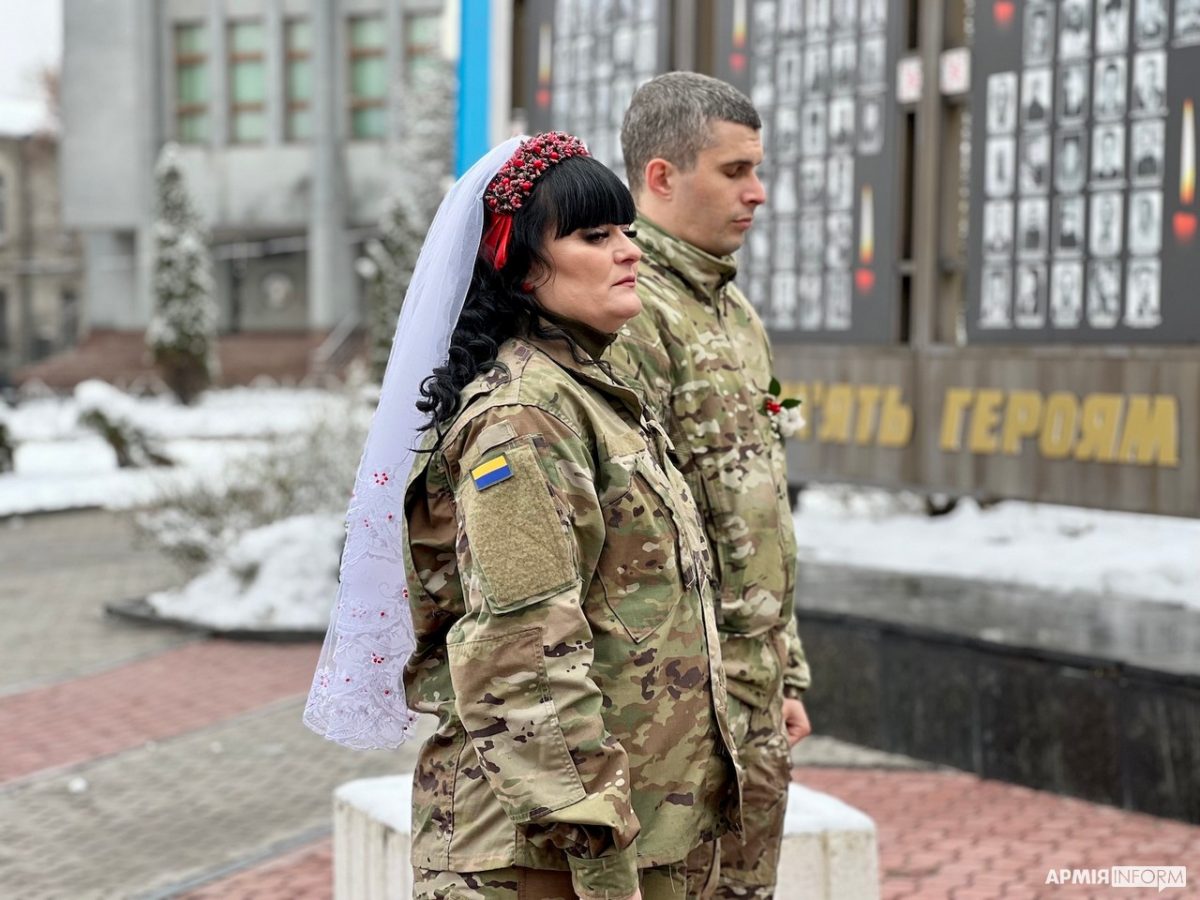 Після весільної церемонної Олег та Ольга поклали квіти до Стели пам’яті Героїв Небесної Сотні та учасників АТО.