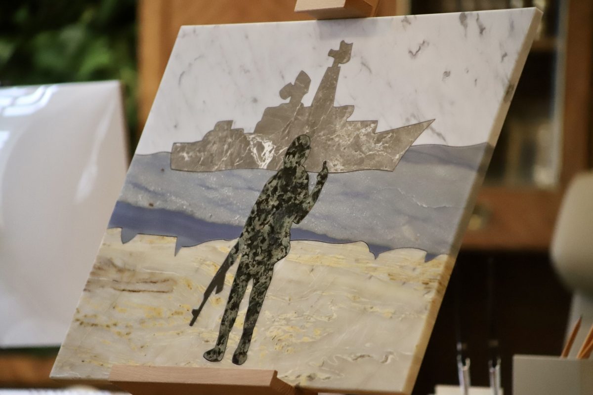 «Символічно, що український військовий на цьому панно — вироблений з українського граніту, все інше — з мармуру», — наголосила Ірина Гримак.