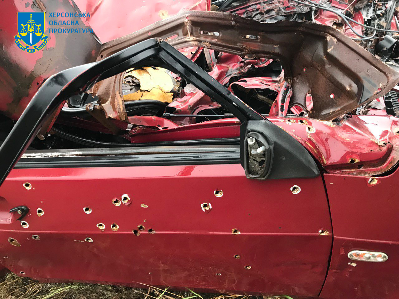 В Херсонської області задокументовано черговий цинічний злочин військових рф. У березні 2022 року військовослужбовці зс рф між двома селами у Херсонському районі розстріляли з автоматичної зброї автомобіль, в якому перебувало двоє цивільних, та переїхали його танком.