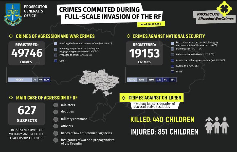 За офіційними даними ювенальних прокурорів 1 291 дитина постраждала внаслідок збройного вторгнення рф в нашу державу, з них: