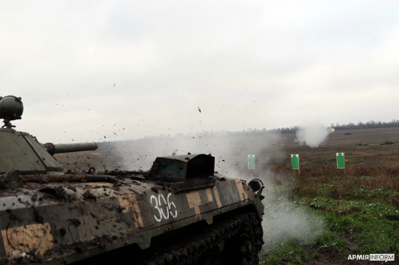 Водночас хлопці тренуються вести вогонь з озброєння БМП по умовній бронемашині противника. На іншій локації вони відпрацьовують питання димового маскування.