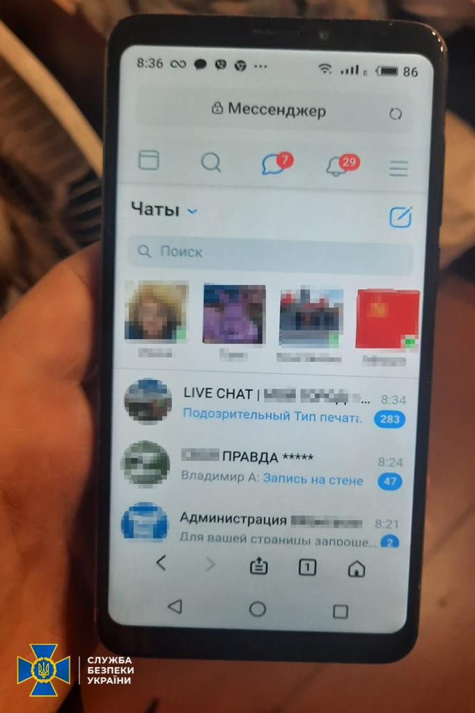 Під час обшуків за місцем проживання зловмисника правоохоронці вилучили мобільні телефони, з яких він контактував з російською спецслужбою. Також у його помешканні виявили заборонену в Україні комуністичну символіку і пропагандистські матеріали на підтримку комуністичної партії рф.