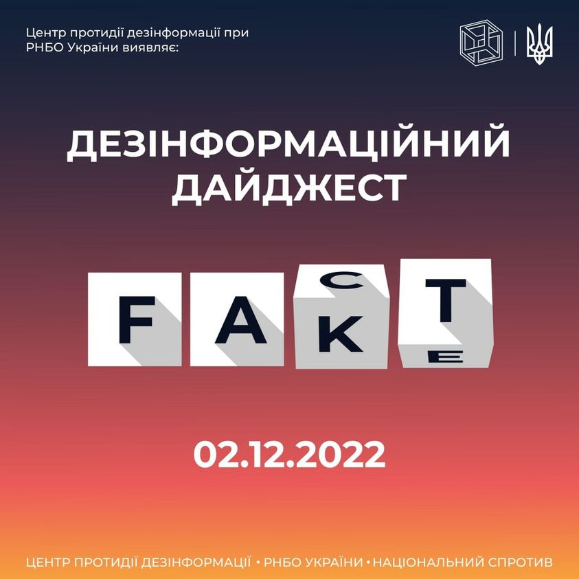 Центр протидії дезінформації при РНБО України виявляє: протягом минулої доби 02.12.2022 окупанти поширили:
