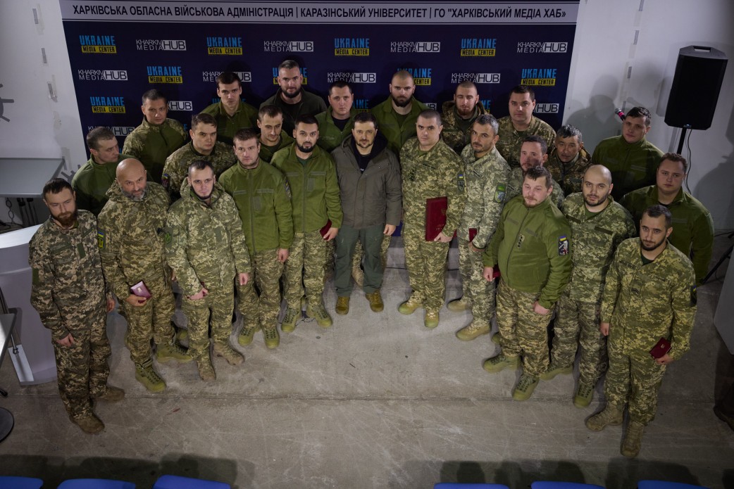 З нагоди Дня Збройних Сил України Президент Володимир Зеленський зустрівся з українськими військовими, які мужньо й самовіддано захищали суверенітет і територіальну цілісність України на Харківщині під час широкомасштабного вторгнення Росії.