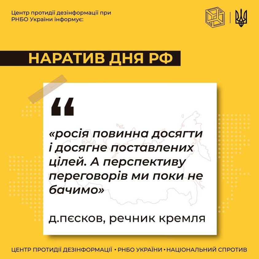 Центр протидії дезінформації при РНБО Україна інформує: основний наратив, що сьогодні просувають російські ЗМІ
