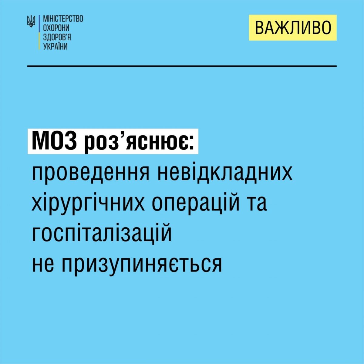 Міністерство охорони здоров’я наголошує, що рішення щодо плановості або ургентності операції може ухвалювати виключно лікар.