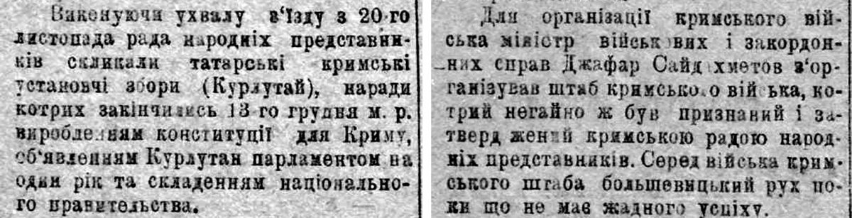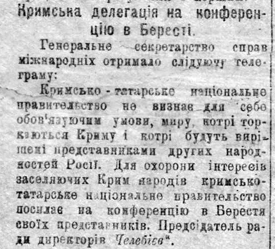Справді, так само, як і українську гетьманську державу, кримськотатарську державність було знищено російськими окупантами у другій половині XVIII ст. І так само, як українці під час революційних подій 1917–1921 років, кримськотатарський народ змагав до творення незалежної національної держави.