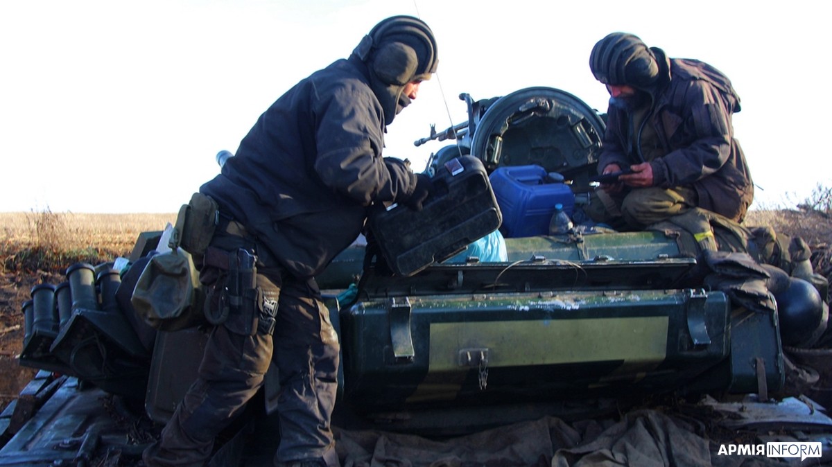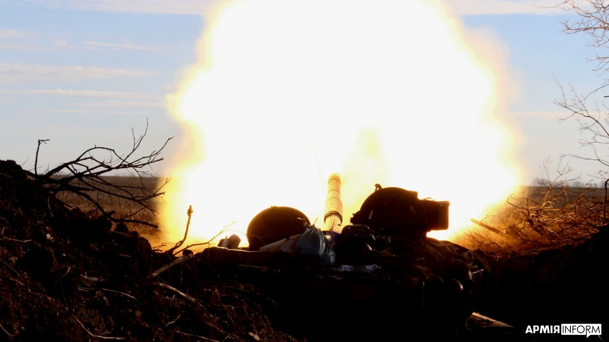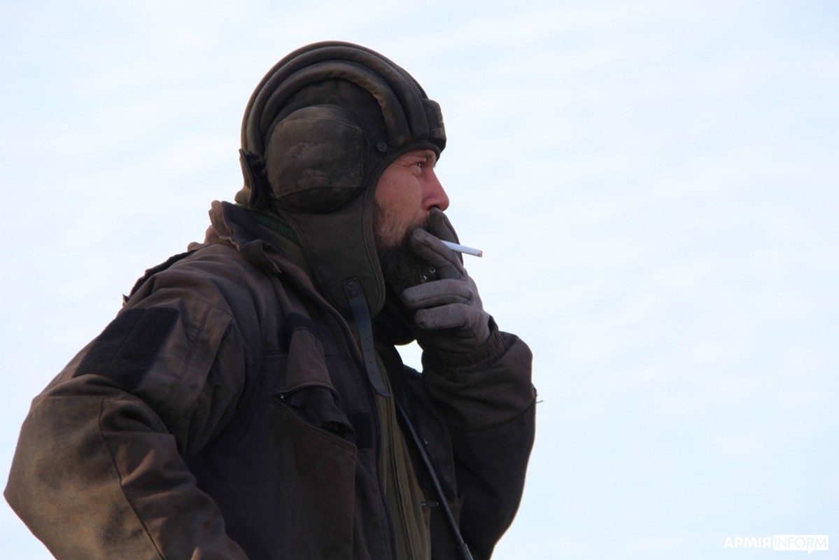 Нашу бесіду перериває виклик по рації. Танкісти прожогом займають місця в бойовій машині й вона, заревівши двигуном, починає водити стволом гармати, наче щось дописує у небі. З окопу поблизу чути, як танкова гармата гучно рявкає, раз у раз посилаючи окупантам «гостинці». Десь за пару трійку кілометрів у небо починає важко повзти чорна кіптява диму. Влучили! Ще одна «жирна ціль» перетворюється на жирну кіптяву в біло-сірому грудневому небі.