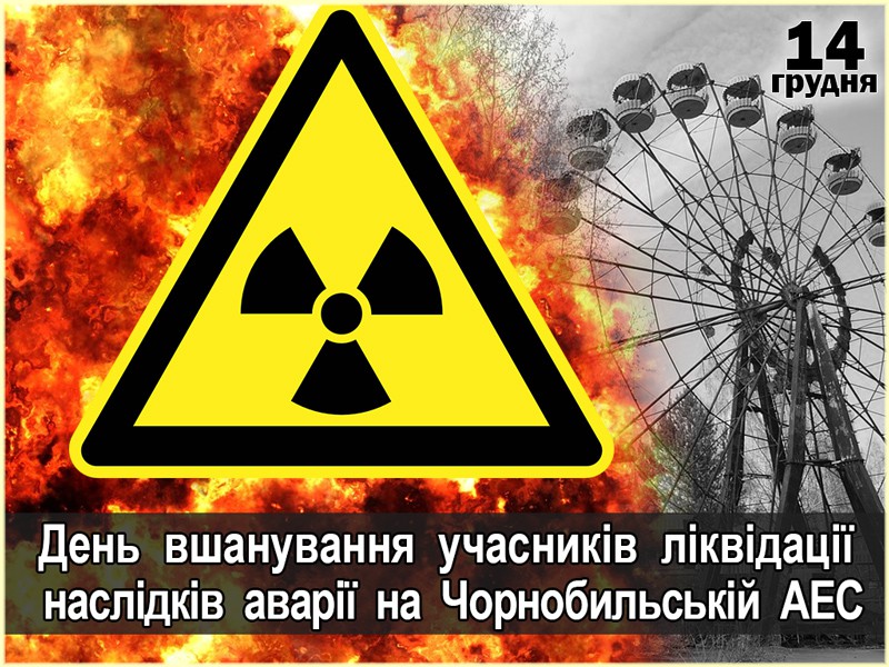 14 грудня в Україні відзначають День вшанування учасників ліквідації наслідків аварії на Чорнобильській АЕС. Ця дата відзначається щорічно у день закінчення будівництва саркофага над зруйнованим четвертим енергоблоком. День пам’яті встановлено в Україні «…з метою гідного відзначення мужності, самовідданості та високого професіоналізму учасників ліквідації наслідків аварії на Чорнобильській АЕС…» згідно з Указом Президента України «Про День вшанування учасників ліквідації наслідків аварії на Чорнобильській АЕС» від 10 листопада 2006 р. № 945/2006.