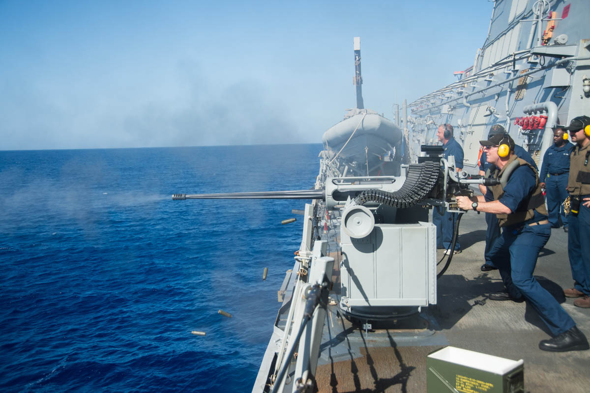 Корабельна система Mk 38 Machine Gun System — ймовірно, найкращий із доступних варіантів гарматного протидронного озброєння. До складу цієї сучасної системи ППО входять: швидкострільна 25-мм гармата M242 Bushmaster (180 пострілів на хвилину), оптична система прицілювання з лазерним далекоміром і досконала система керування вогнем. Попри своє «морське походження», гарматна система Mk 38 доволі просто встановлюється на сухопутні мобільні платформи.