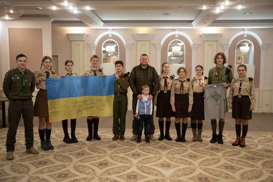 Представники скаутської організації «Пласт» передали Головнокомандувачу Збройних Сил України Вифлеємський вогонь миру. Зі свого боку генерал Валерій Залужний підписав скаутам прапор, футболку для благодійного аукціону та вручив солодкі подарунки.