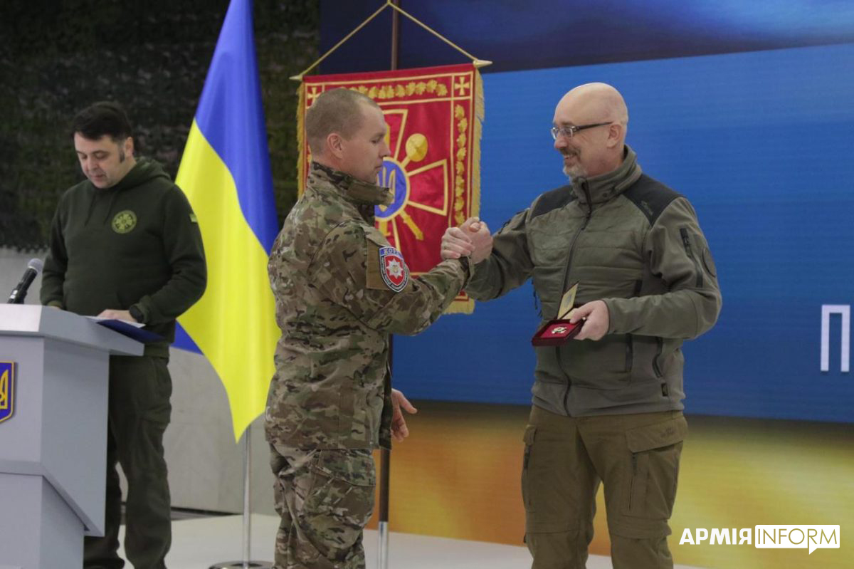 «Сили оборони є частиною народу, який складається з хоробрих вчителів, що рятували дітей. Блискучих медиків, які перемагали смерть. Фантастичних енергетиків, які щоразу реанімують електрику і повертають людям світло, тепло, воду. Наших комунальників, які забезпечують життєдіяльність і створюють добробут у найскладніших умовах. Наших рятувальників, залізничників, журналістів, науковців, працівників легкої промисловості. Українських підприємців, які попри все працюють, дають можливість людям годувати свої сім’ї. Людей різних професій, різного віку. Але об’єднаних спільною метою – Перемогти», – зазначив Олексій Резніков.