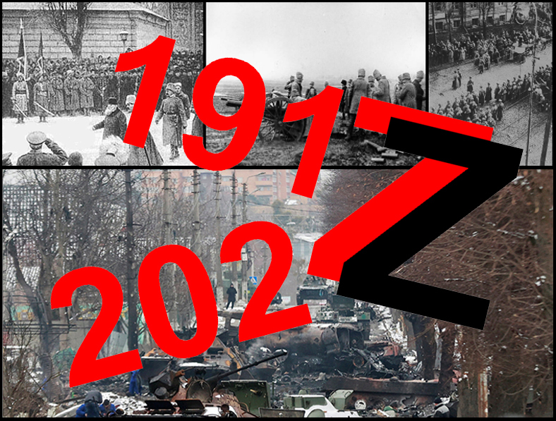 Століття потому, розпочавши 2014 року агресію проти України на Донбасі, російська федерація так само намагалась прикривати агресію підконтрольними їй квазідержавними утвореннями — так званими днр та лнр. Коли ж українці спромоглися локалізувати вогнище конфлікту і не піддалися нав’язуванню облудного наративу про буцімто громадянську війну, останньою спробою рашистів підкорити Україну став широкомасштабний напад на український народ і українську державу.