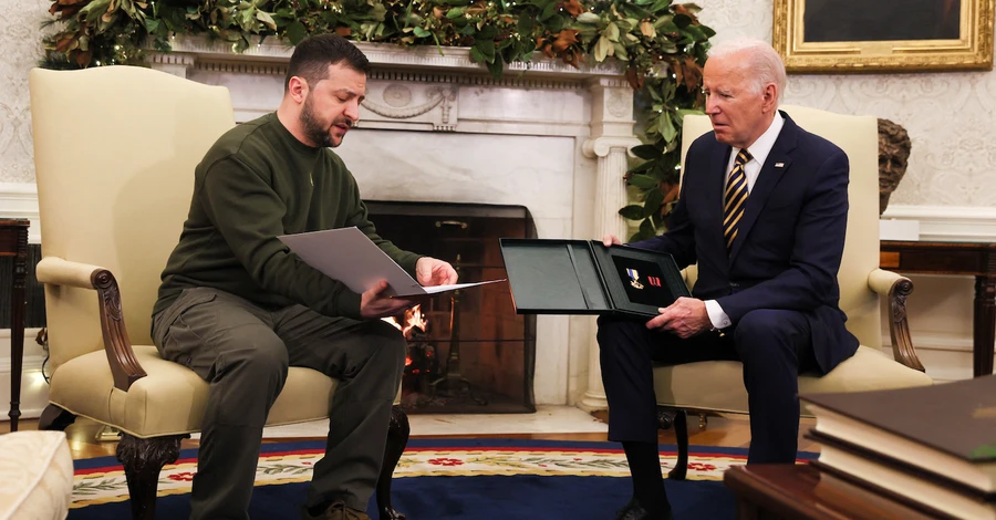 «Передав американському колезі відзнаку «Хрест бойових заслуг» від українського військового – командира батареї HIMARS. Під час нашої зустрічі у Бахмуті він попросив передати його нагороду Джозефу Байдену на знак вдячності за неоціненну підтримку України і той внесок, який зробили Сполучені Штати у посилення української обороноздатності», – зазначив Володимир Зеленський.