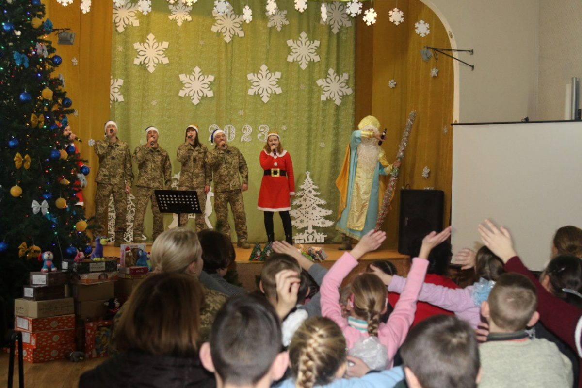 Як розповіли журналістові АрміяInform у Службі військового капеланства, поїздку до маленьких українців, які залишилися без батьків, приурочили до різдвяних та новорічних свят. Військовий капелан отець Віктор Чверкун розповів малечі про християнські традиції та обряди, сутність Дня Святого Миколая та Різдва Христового. А потім військові артисти презентували дітям цікаву й насичену різдвяно-новорічну виставу. За словами начальника оркестру — заступника начальника Центру військово-музичного мистецтва Повітряних Сил майора Олега Шкуропата, у концертній програмі цього разу були як різдвяні й новорічні, так і патріотичні українські пісні, танці, різноманітні конкурси. Святий Миколай, а разом із ним ельфи та інші казкові персонажі подарували дітям справжнє відчуття зимової казки, святковий настрій та позитивні емоції. Діти, а їх на свято зібралося понад п’ятдесят, були у захваті — самі вибігали на сцену слідом за артистами та брали активну участь у виставі.