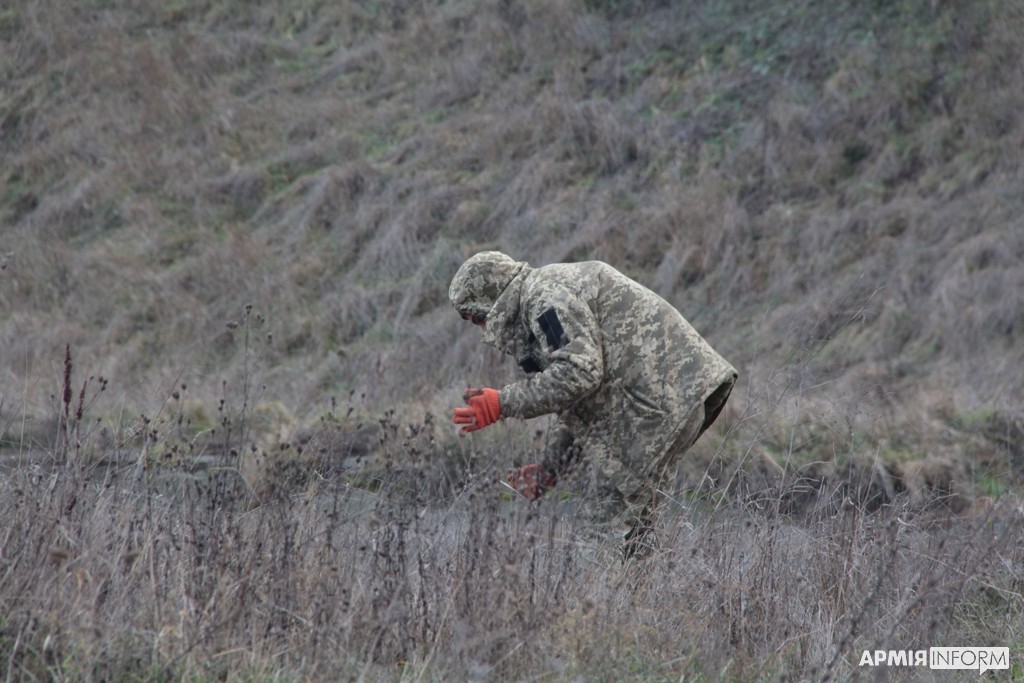Чим поле засіяне?! Озимими… Гумор у саперів дуже специфічний і, відверто, чорнуватий. «Озимі» в даному випадку — це ОЗМ-72, вистрибуючі протипіхотні міни, які окупанти встигли рясно натикати в українську землю. До того ж замінована ця ділянка способом «на розтяжку», що суперечить нормам Оттавської конвенції, до якої Україна приєдналася ще в 90-ті роки минулого століття.