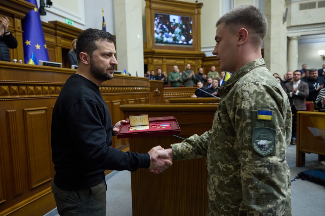 Президент вручив «Золоту Зірку» майору Вадиму Ворошилову, який із першого дня повномасштабного вторгнення Росії здійснив 75 бойових вильотів. Майор виконує бойові завдання з перехоплення та знищення повітряних цілей. Так, 12 жовтня льотчик збив п’ять дронів-камікадзе Shahed-136. Під час знищення дрона над Вінниччиною неподалік літака розірвалася ракета, унаслідок чого він втратив керованість. За курсом була Вінниця. Вадим Ворошилов продовжив рух і, упевнившись у тому, що вивів літак у безпечну зону, здійснив катапультування.