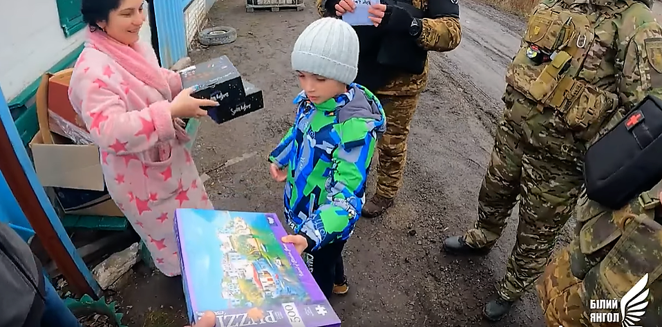 Попри вмовляння поліцейських, в Бахмуті залишаються родини з дітьми. Напередодні Нового року «Білий Янгол» завітав до малечі з подарунками — іграшками, солодощами, дитячим харчуванням.