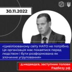 Центр протидії дезінформації проілюстрував на своїй офіційній сторінці у Facebook головні наративи 2022 року рф, які змінювалися пропорційно до того, як «побєдоносно» відступали окупаційні війська. Йшлося про «Міжнародну політику росії».