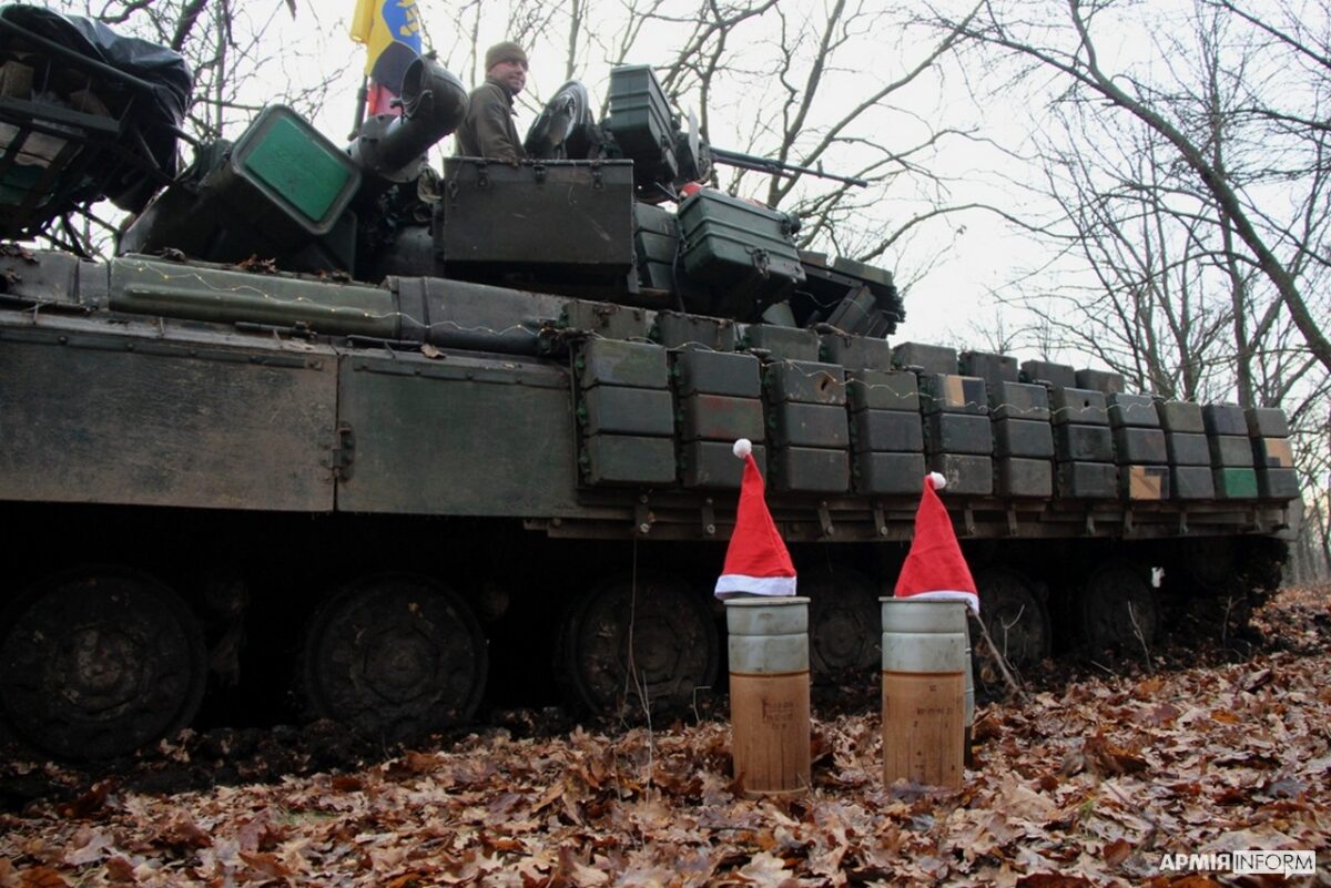 Танкісти окремої механізованої бригади, яка тримає фронт на одній з ділянок Бахмутського напрямку, окрім того, що постійно працюють по ворожих цілях, обслуговують і тримають напоготові свою техніку, ще й не втрачають доброго гумору і вирішили поділитися святковим настроєм зі співвітчизниками.