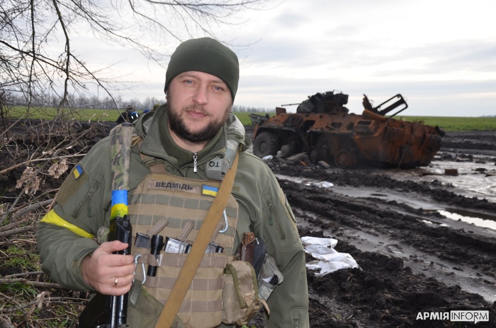 Позаду Миколи стоїть обгорілий бронетранспортер ворога, екіпаж якого намагався втекти, але був знищений разом із бойовою машиною. Нині ж активних просувань на цій ділянці фронту немає. Тривають жорстокі артилерійські дуелі, протидія диверсійно-розвідувальним групам противника, що намагається викрити систему оборони українських військовослужбовців.