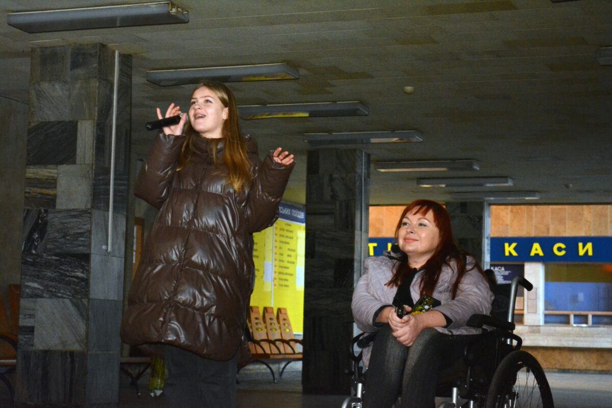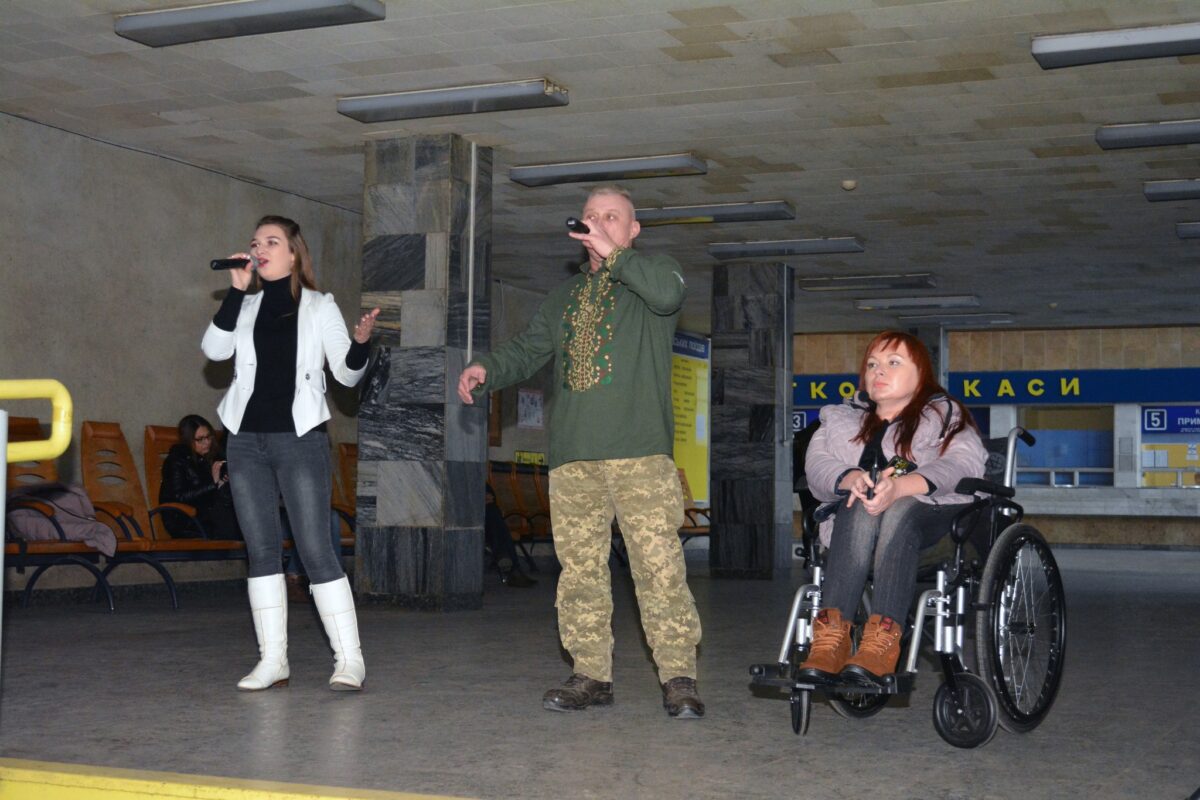 Першим етапом акції стала півторагодинна концертна програма для пасажирів на залізничному вокзалі у Хмельницькому.