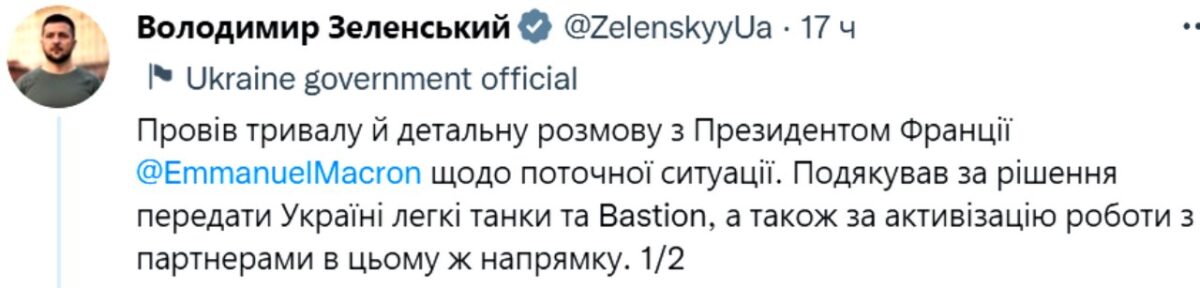 Одним із перших презентів у новому році для українського війська стало офіційне оголошення Францією про передачу нашим оборонцям партії багатоцільових бронетранспортерів Bastion виробництва компанії ACMAT. Про це Президенту Володимиру Зеленському під час телефонної розмови повідомив його колега з Французької Республіки Еммануель Макрон.