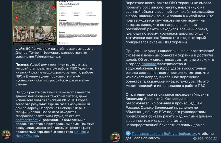 Красномовно свідчать про кровожерливий характер сучасного російського суспільства й заголовки ЗМІ рф: «Украинские СМИ соврали о попадании российской ракеты в жилой дом в Днепре. На самом деле, в здании произошёл взрыв газа», «Украинцы после взрыва в Днепропетровске атаковали соцсети „Мисс россии“», «Лживые власти: украинцы прозреют после обрушения дома в Днепропетровске», «РВ: Появились кадры, подтверждающие, что дом в Днепре разрушен из-за ПВО (ВИДЕО)»…