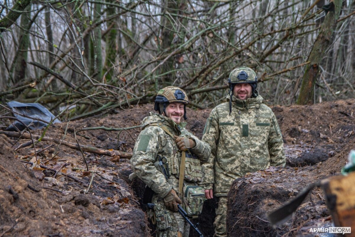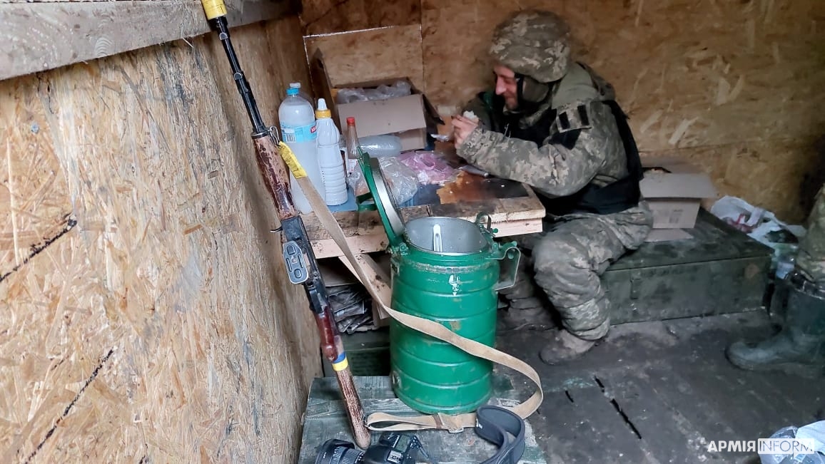 Позиція розташована в лісосмузі — тут ми вже почуваємося у відносній безпеці. Удень і вночі, попри дощ, сніг і морози, тут невпинно несуть службу військовослужбовці-тероборонці. Їхні погляди, вся увага, а також зброя направлені в бік північного сусіда, адже чекати від нього можна лише підступності, провокацій і чергових неприємних сюрпризів у вигляді «прильотів». Та і зараз тут не тихо, час від часу десь на відстані чутно звуки розривів від мінометів та чогось більшого… Командир взводу Олексій гостинно зустрічає нас: хлопці втомилися жити поза цивілізацією, не маючи навіть засобів зв’язку — ворог може встановити місце перебування підрозділу через телефони та «накрити» його. Тому будь-яка особа, яка відвідує їх — це «віконце» у мирний, на скільки це можливо в умовах повномасштабного вторгнення, світ.