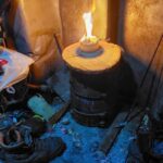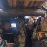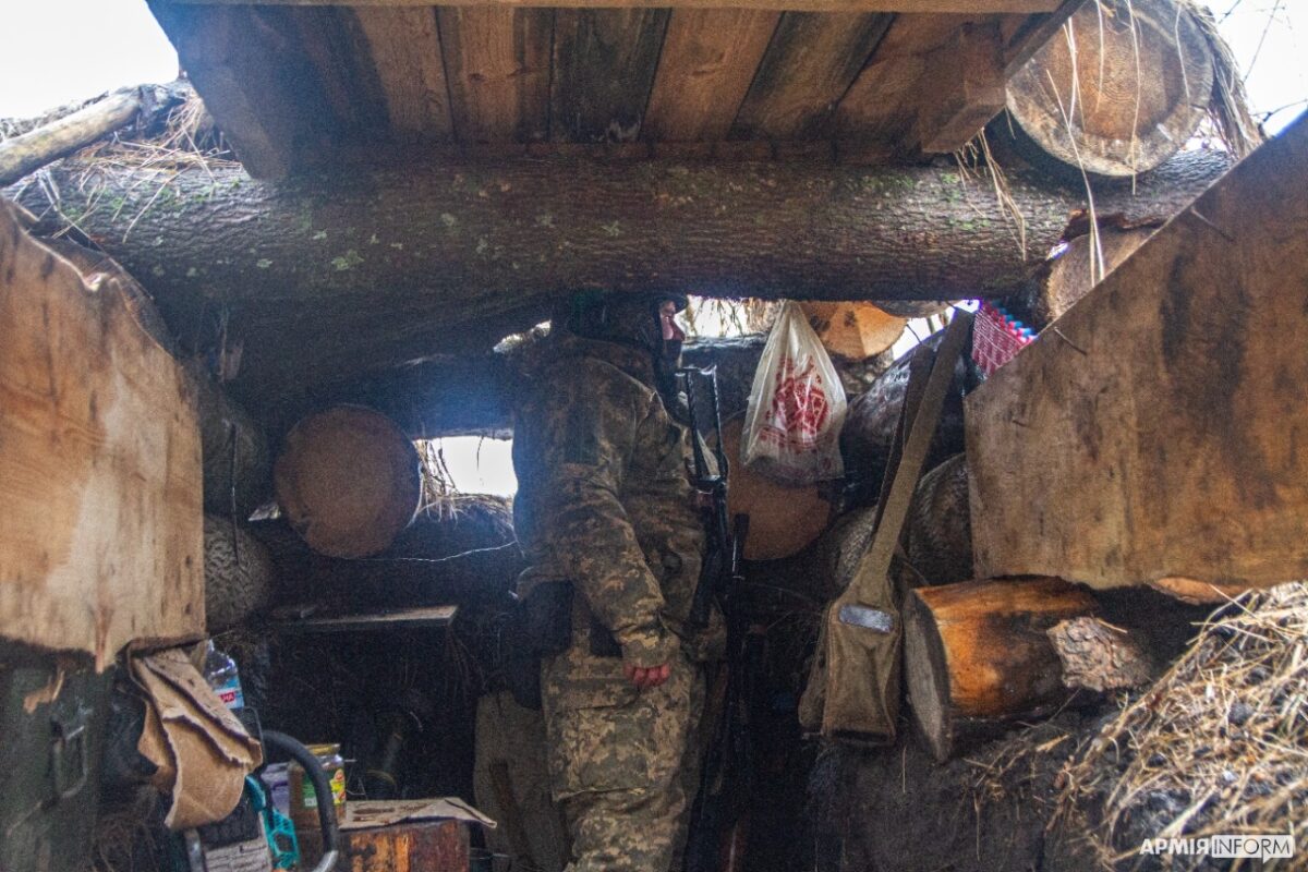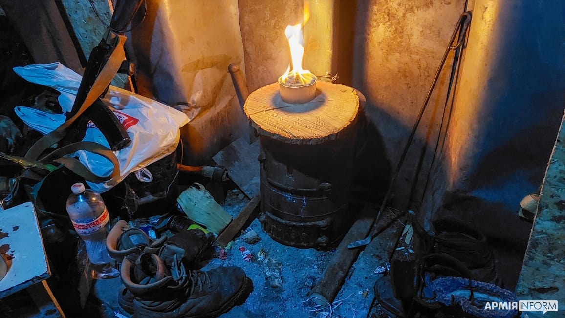 На вулиці мрячно, морози відступили від Харківщини. На зміну їм прийшли дощі та тумани. Розуміючи, що руки від холоду вже не хочуть тримати фотоапарат, спускаюся до бліндажа. Криївка освітлюється окопною свічкою, в буржуйці весело тріщать дрова й панує забутий з дитинства запах дров’яної бані… І тут, і там розвішані речі хлопців, які сохнуть від вологи, яка ввібралася від нічних дощів.