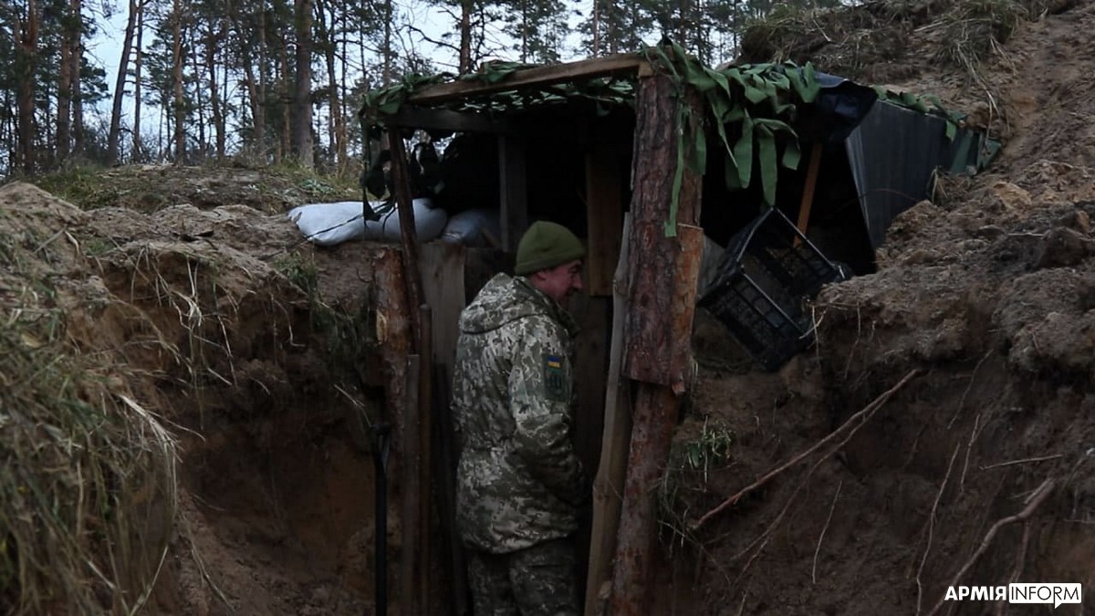 «Це п’ятизірковий у нас!», — каже військовослужбовець одного з підрозділів Сил ТрО ЗСУ з позивним «Цар». Чоловік показує бліндаж, в якому мешкає разом із двома побратимами.