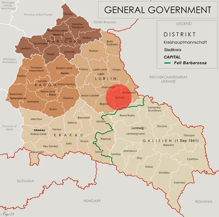 Область Замостя у Люблінському воєводстві Польщі, уславлена надзвичайно родючими чорноземами, привернула особливу увагу нацистів. Вона стала одним із головних об’єктів німецької колонізації на території так званої Генеральної губернії — адміністративної одиниці, утвореної нацистами під час Другої світової війни у центрально-східній частині окупованої Польської держави. До кінця 1943 року нацисти планували переселити сюди щонайменше 60 тис. етнічних німців. Замостя мали перейменувати на «гіммлерштадт» на честь генріха гіммлера, рейхсфюрера сс (1929–1945 роки) та рейхсміністра внутрішніх справ третього рейху у 1943–1945 роках. Однак, назву міста вирішили змінити на «Пфлугштадт» («місто плуга») на честь німецького «плуга», який мав «зорати Схід».