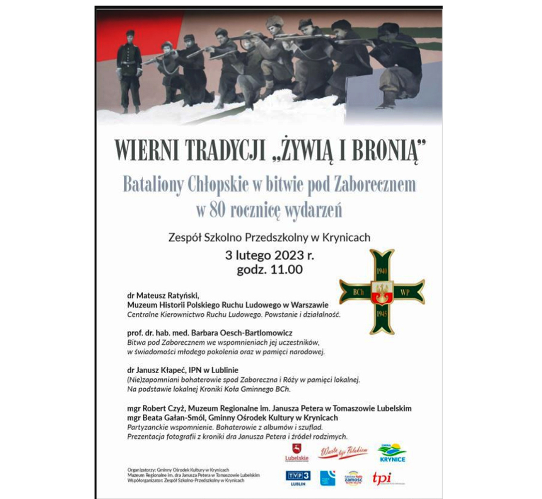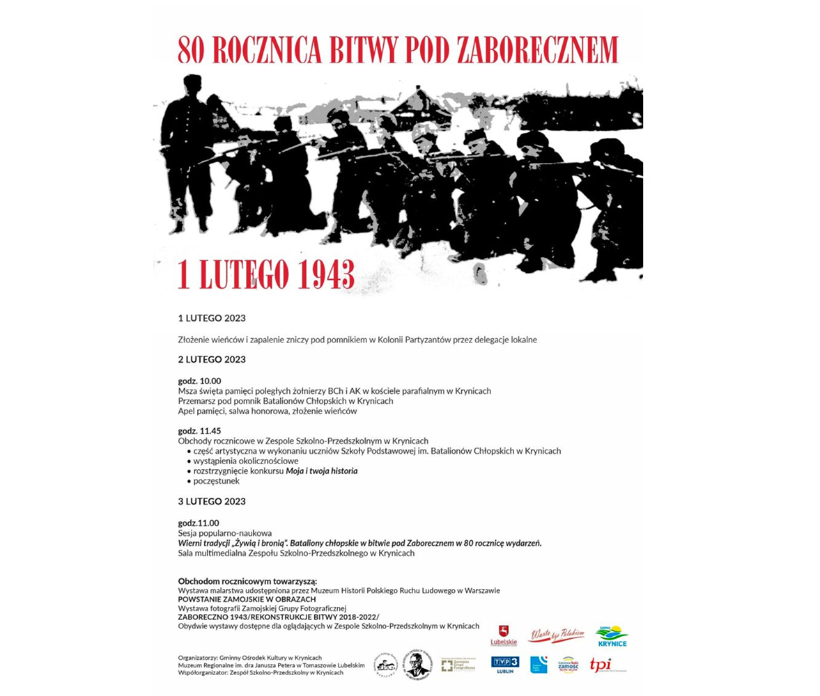 80 років тому, 1 лютого 1943 року, поблизу села Заборечного у Замойському районі Люблінського воєводства відбулась одна з найбільших повстанських битв польського Руху Опору нацистським загарбникам. У ній партизани розгромили ворожі сили, що переважали, на підступах до села і на тривалий час зупинили нацистські каральні акції на Замойщині.