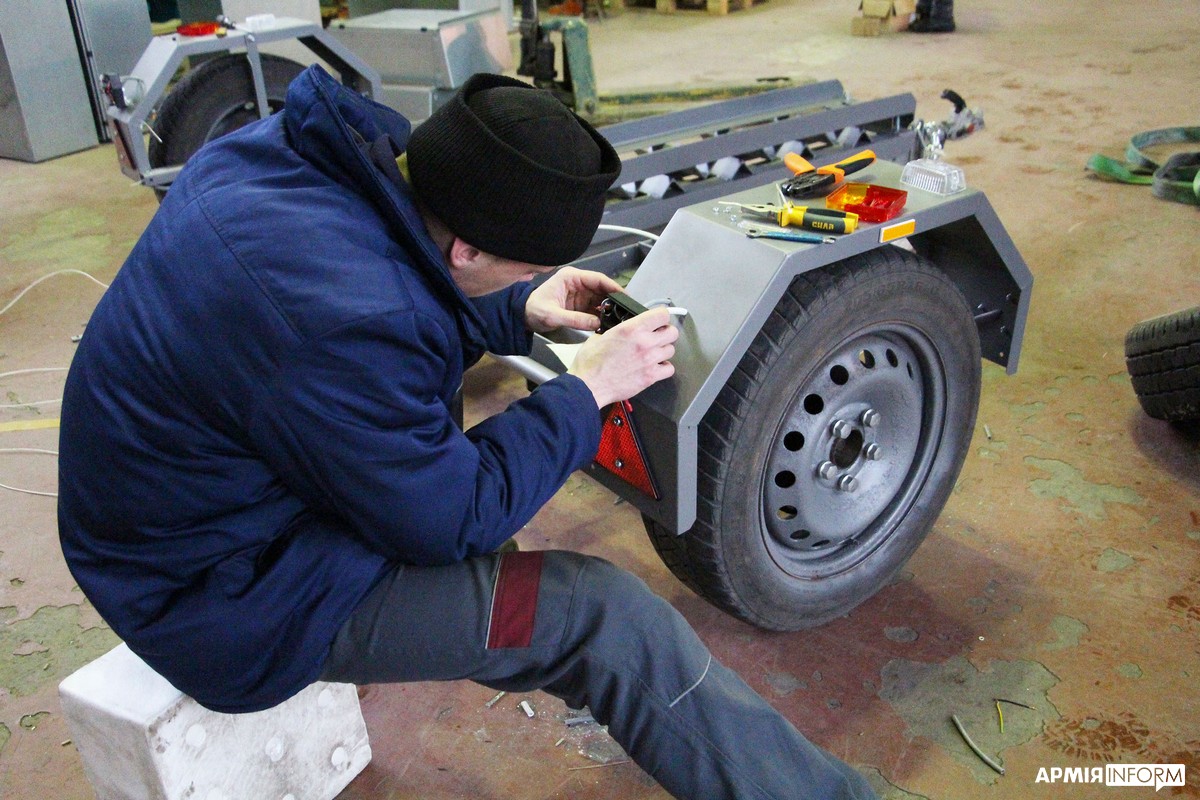 Сьогодні місцеві електрики, слюсарі, зварювальники, фрезерувальники, інженери та токарі запустили виробництво напівпричепів для підрозділів Збройних Сил України, що не поступаються європейським аналогам. Спершу підприємці розробили креслення напівпричепа, узгодили з військовими, а пізніше приступили до реалізації задуму. Для виготовлення одного зразка місцевим умільцям потрібно близько тижня. Виріб призначений для транспортування автомобілів на передніх колесах.