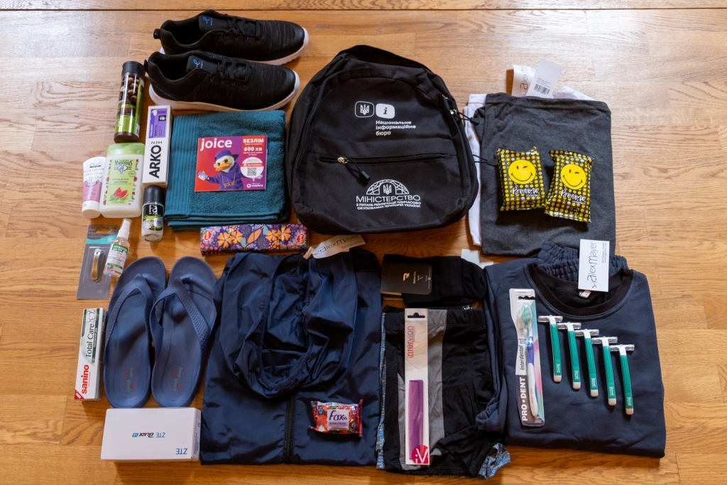 — Це рюкзак, в якому є все необхідне: приміром, засоби гігієни, зміна білизни, спортивний костюм, речі за сезоном, взуття, шльопанці… Є й мобільний телефон зі стартовим пакетом. Окрім цього, ми видаємо кожному пам’ятку з приблизно таким текстом: «Шановний захисник/захисниця, ми працюємо на вас. Вас звільнили зусиллями Координаційного штабу, але нам потрібна ваша допомога, щоб звільнити ваших побратимів/посестер. Ви маєте нам розказати про них». І там є QR-код, вони можуть зайти і подати інформацію про всіх своїх, кого вони бачили, можуть подати інформацію, де вони перебувають, в якому фізичному та моральному стані.