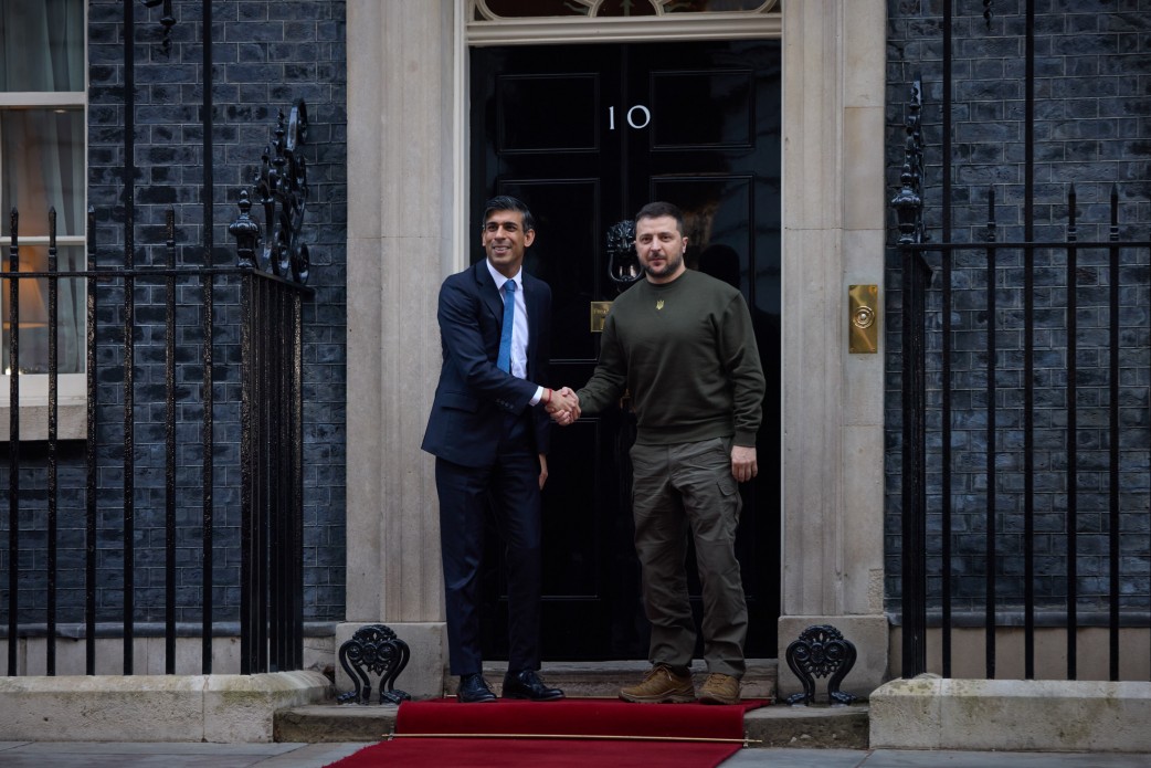 У Лондоні Президент України Володимир Зеленський з прем’єр-міністром Сполученого Королівства Ріші Сунаком обговорили оборонну співпрацю, реалізацію формули миру, євроатлантичну інтеграцію України, майбутню підтримку з боку Великої Британії.