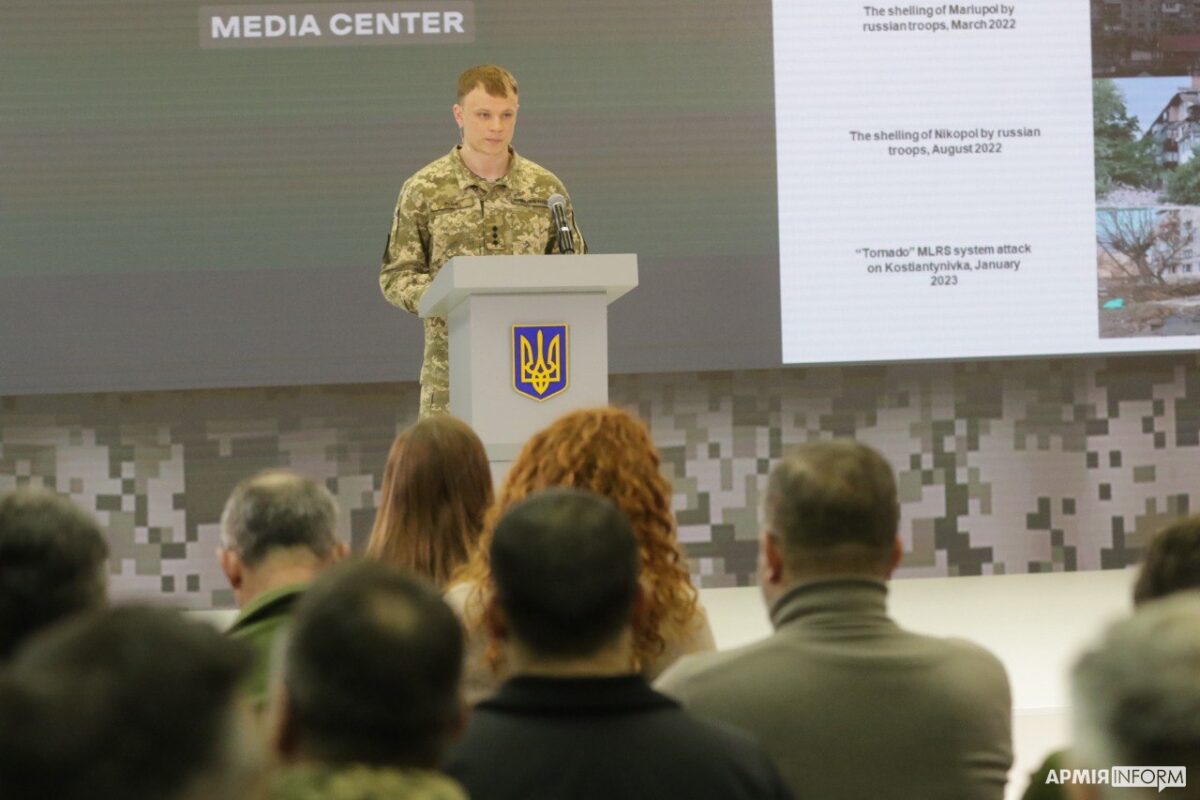 Також під час онлайн-брифінгу на анімаційних слайдах були продемонстровані фотографії ураження російською артилерією цивільної інфраструктури України, а також знімки використання росією фосфорних боєприпасів по позиціях наших захисників.