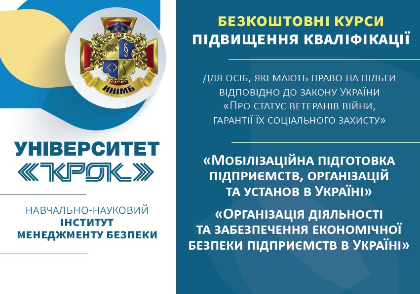 Курси передбачені для осіб, які мають право на пільги відповідно до закону України «Про статус ветеранів війни, гарантії їх соціального захисту» за програмами: «Мобілізаційна підготовка підприємств,організацій та установ в Україні», «Організація діяльності та забезпечення економічної безпеки підприємств в Україні».