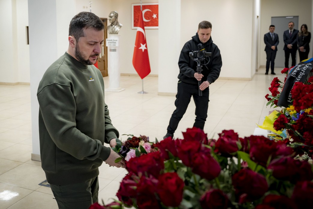 Президент Володимир Зеленський відвідав Посольство Турецької Республіки в Україні та вшанував пам’ять загиблих унаслідок руйнівного землетрусу в Туреччині.