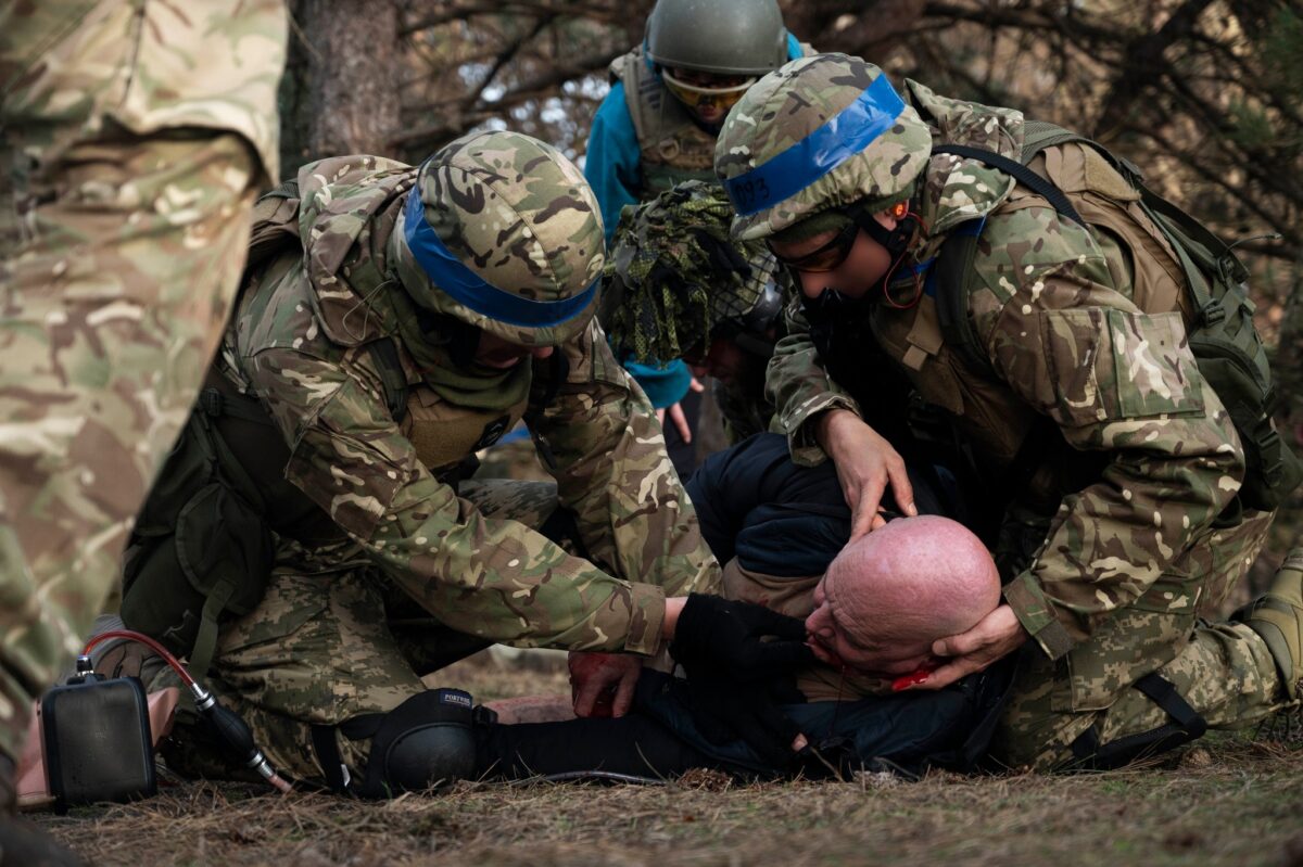 У Великій Британії канадські інструктори навчають новобранців Збройних Сил України загальних принципів домедичної допомоги в бойових умовах.