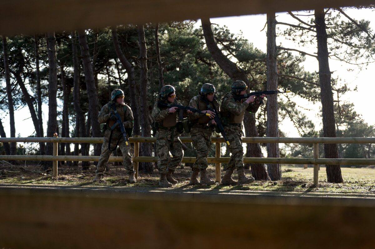 Військовослужбовці ЗСУ у ході базової загальновійськової підготовки у Великій Британії під керівництвом канадських інструкторів вивчають ведення бойових дій в урбанізованій місцевості.