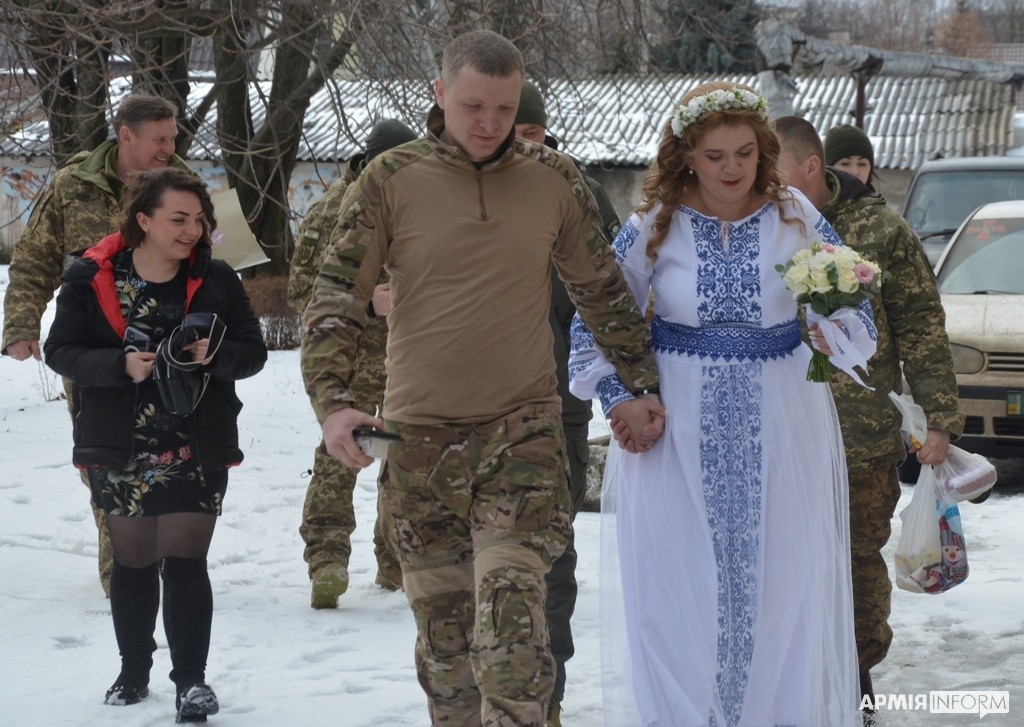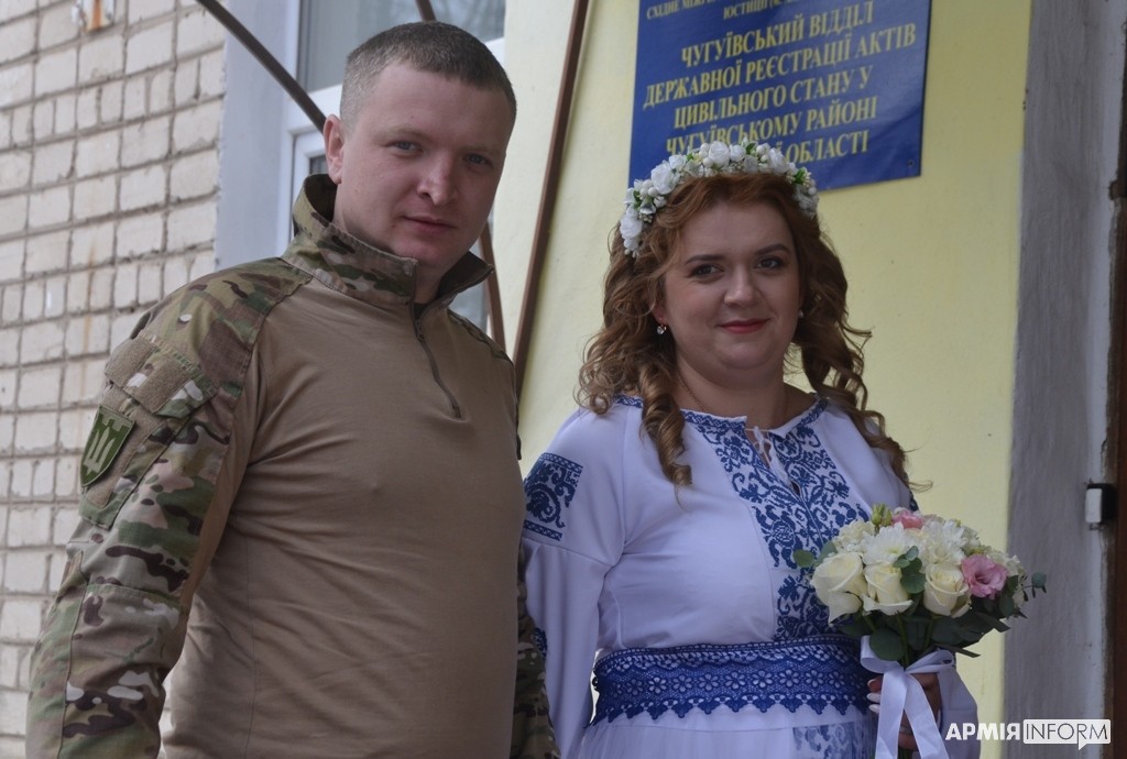 Володимир та Наталія зі Львова, познайомились молодята на фронті, побралися на День закоханих. Вона — заправляє пальним армійську техніку, він — часто виходить «на нуль». Шлюб зареєстрували у Чугуєві, неподалік якого військовослужбовці Львівської бригади ТРО виконують бойові завдання. Шлюб Володимира і Наталії — це вже двадцяте весілля у бригаді.