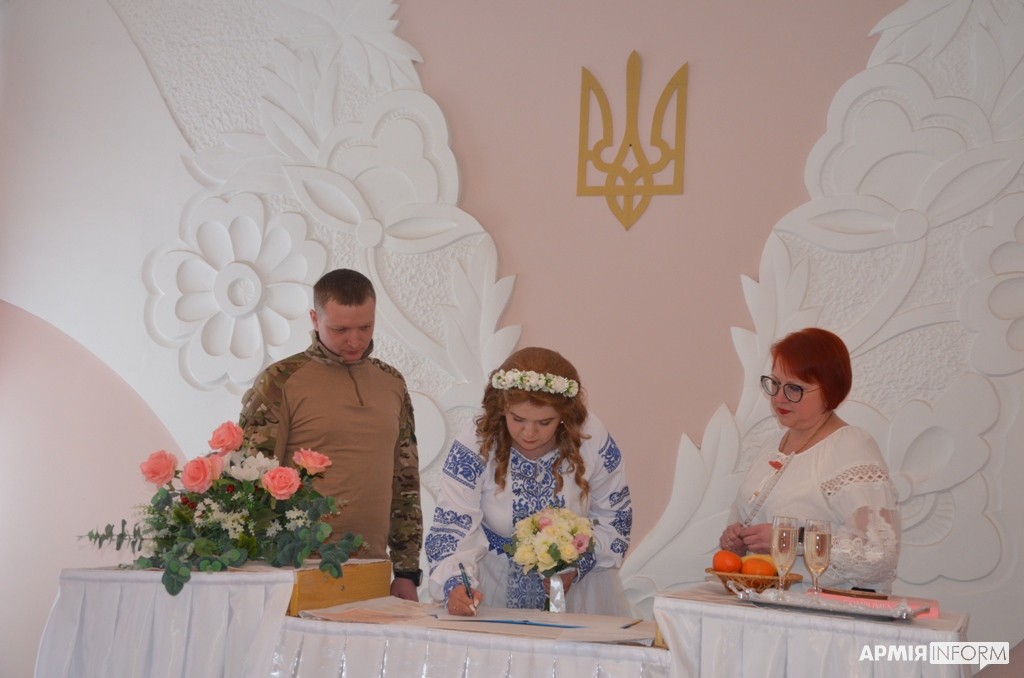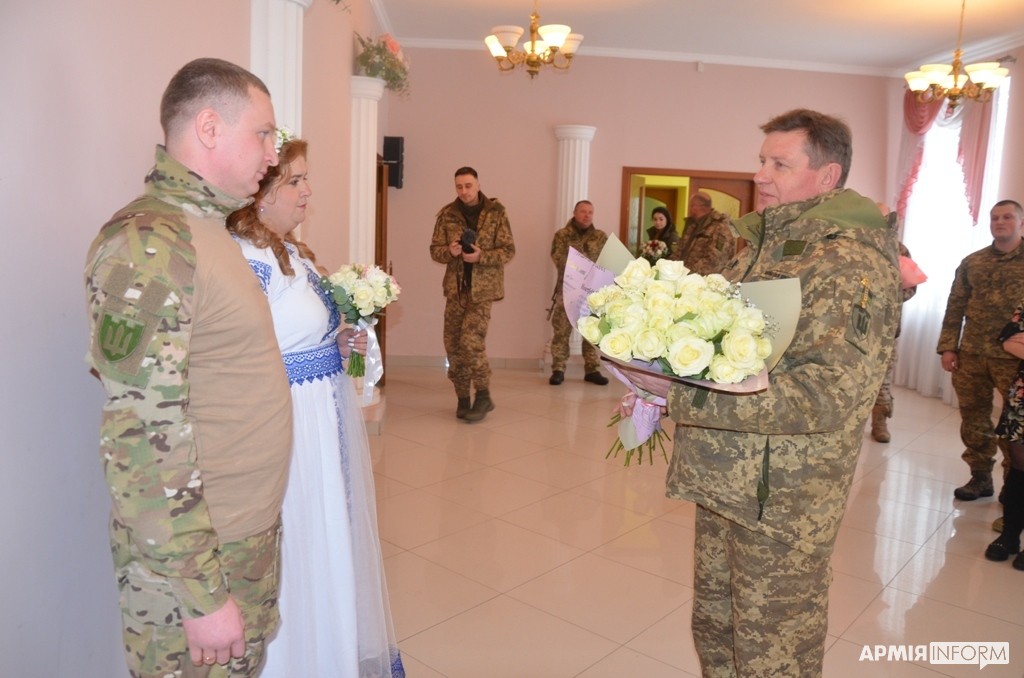 На весілля також завітали і представники військової адміністрації. Посадовці говорять, що шлюбів за участю військовослужбовців в області укладено багато.