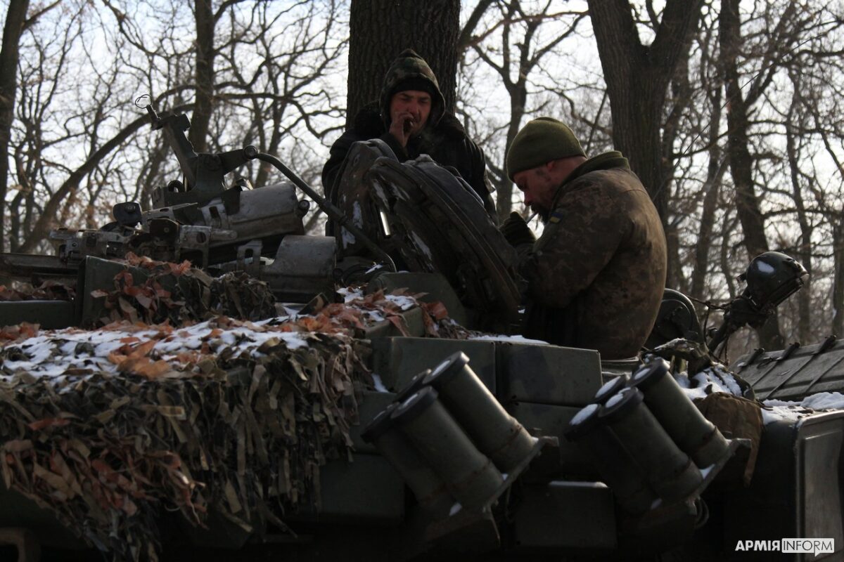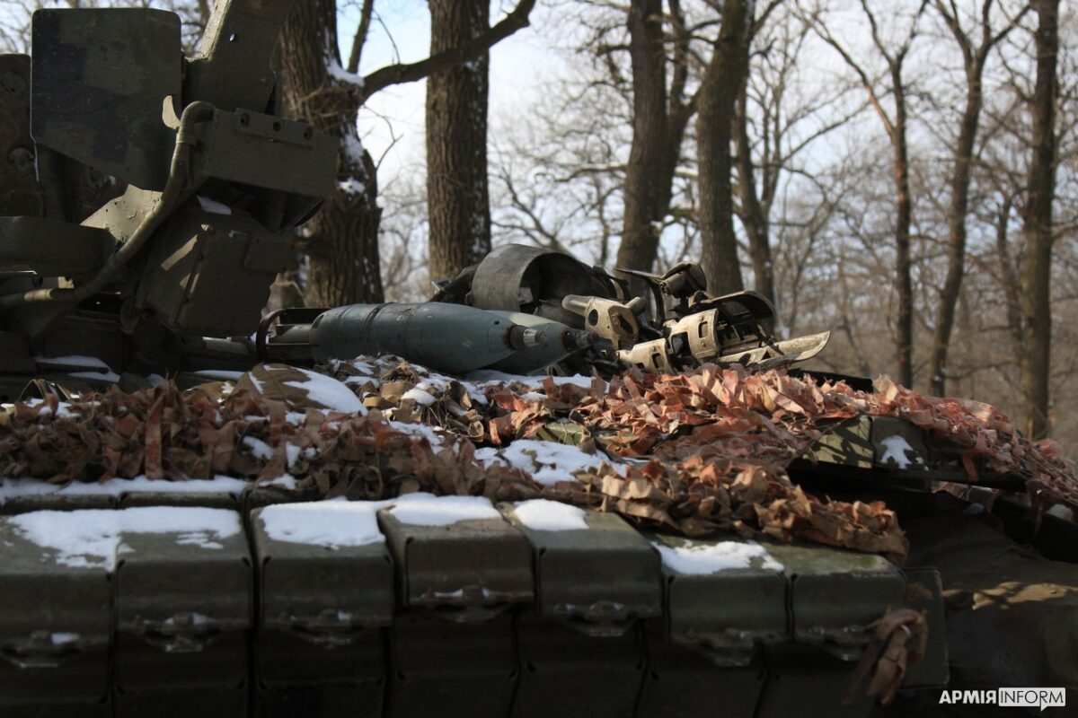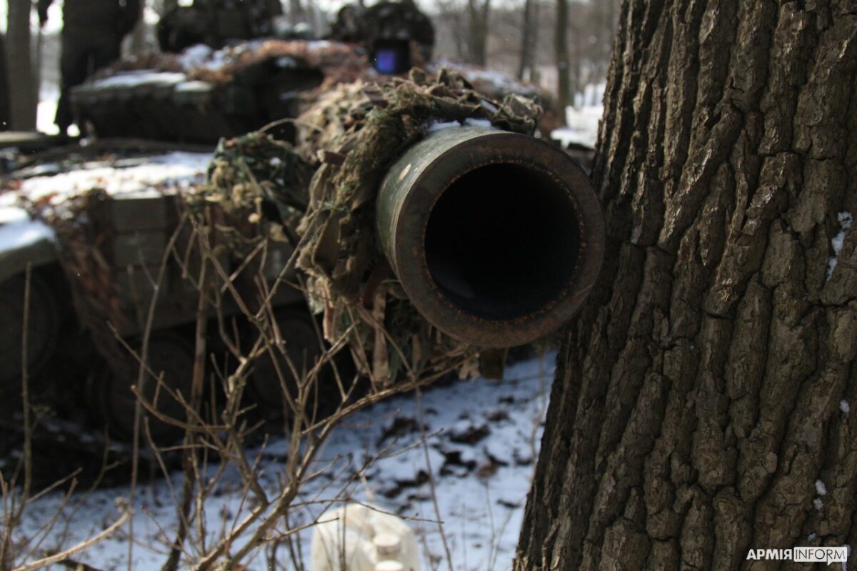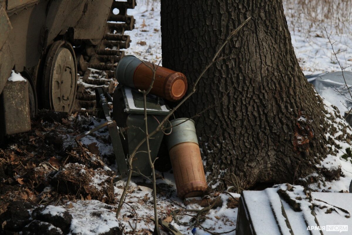 Цю позицію танкісти-холодноярівці почали обживати кілька днів тому: поміж деревами замаскували бойові машини, облаштували місця зберігання боєкомплекту та укриття для особового складу. Попри жалючий морозець, один з екіпажів порається біля свого «мішки», погримуючи залізом об броню.