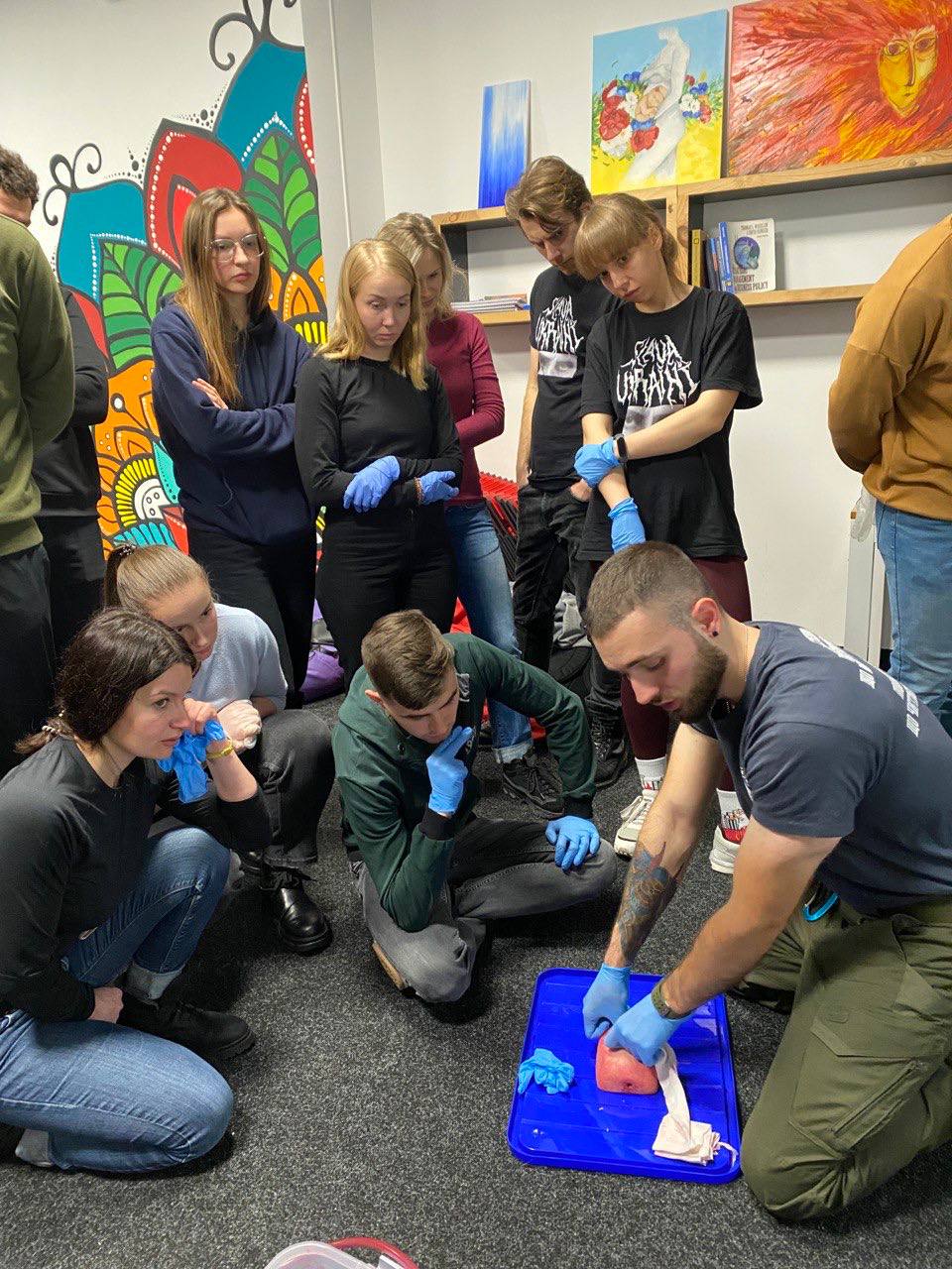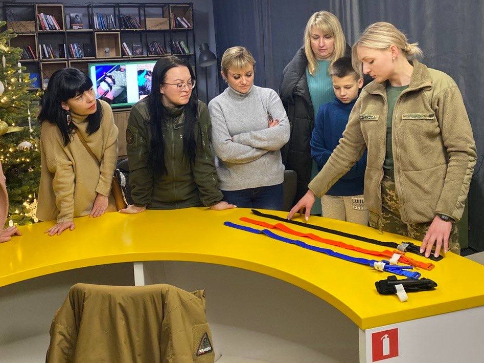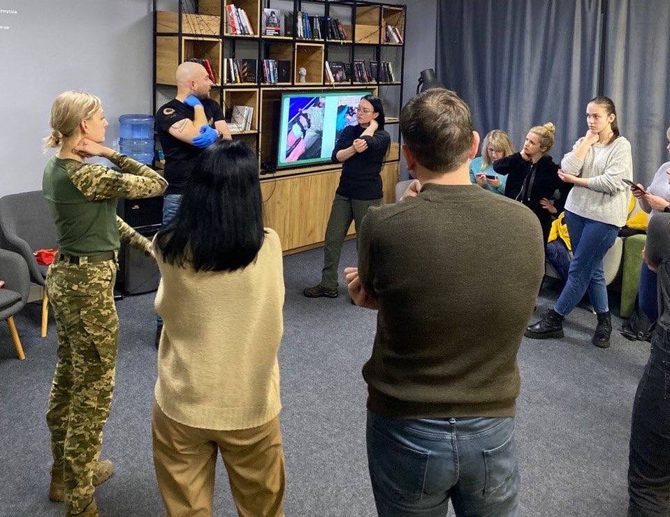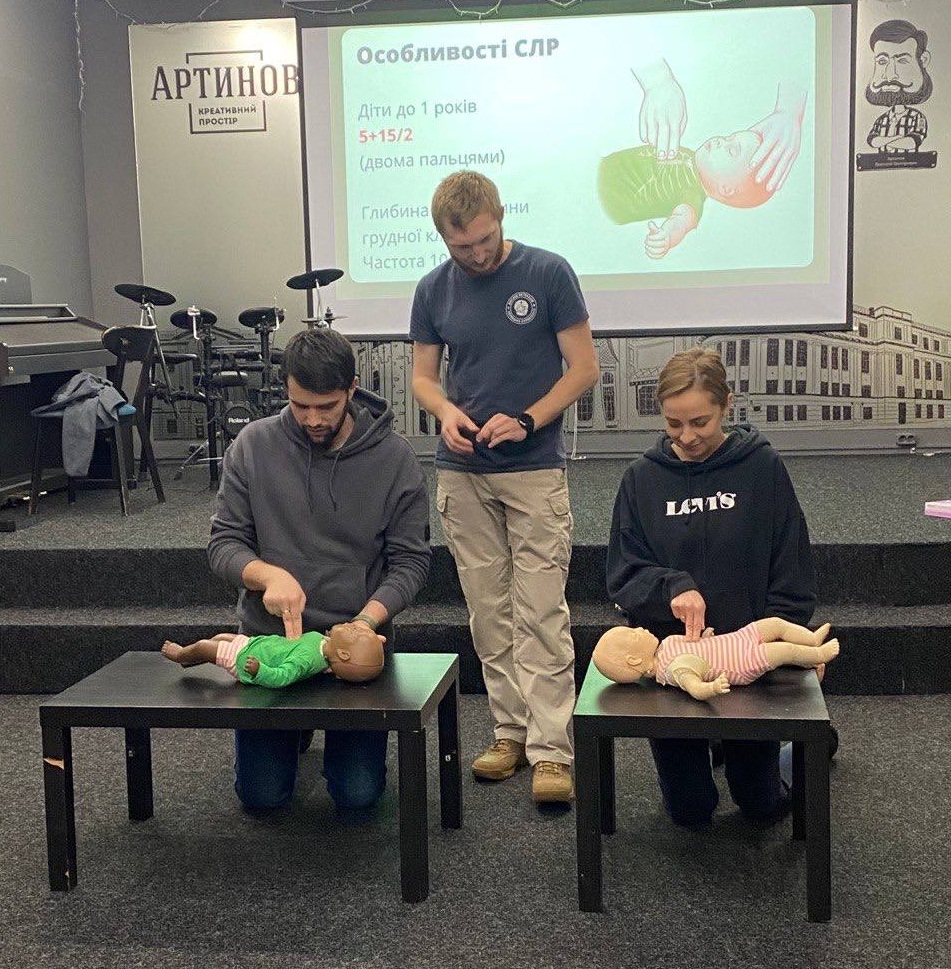 У цілому ж, як розповіли журналістові АрміяІnform у тренінговому центрі, сьогодні його діяльність полягає в організації курсів домедичної допомоги у трьох напрямках. Це домедична допомога в умовах воєнного часу, зупинка критичних кровотеч та перша домедична допомога дітям. Навчання невідкладної допомоги маленьким українцям інструктори проводять під час занять окремо.