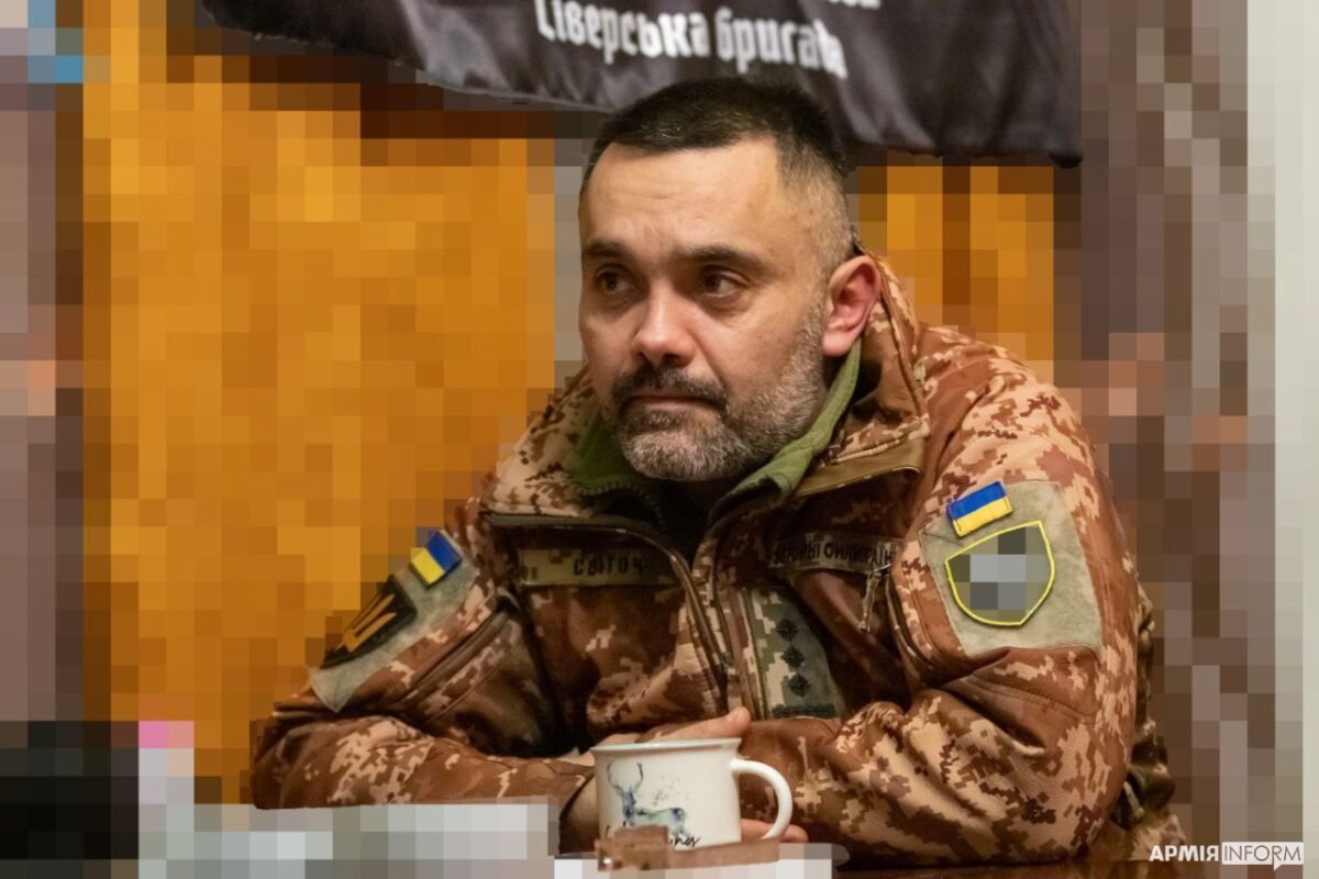 Про інтерв’ю з командиром окремої танкової Сіверської бригади полковником Леонідом Ходою ми, звісно, домовлялись заздалегідь. Навіть просто переговорити 10 хвилин з комбригом під час активних бойових дій — велика удача. До останньої миті не було відомим ані місце, ані точний час зустрічі. Нарешті отримали «+». Підскочили на «точку», привітались. Та буквально одразу у командира ожила рація: «росіяни розпочали штурм»… Чекаємо. «Світоч» повертається за дві години. По-командирськи чітко визначає: «Питайте, у вас 30 хвилин».