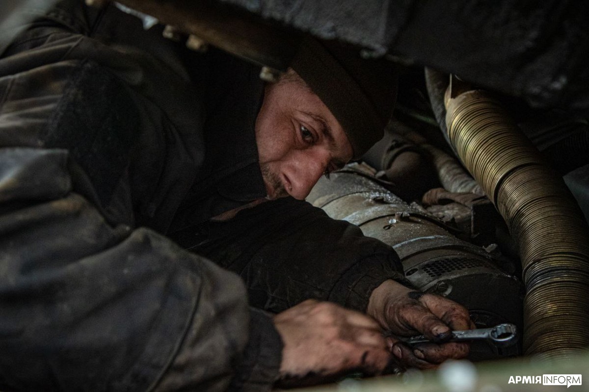 — Наша техніка працює вже десятиліттями, тож ремонтуємо її багато, часто, і вдень, і вночі, за різних погодних умов, — показує своє господарство Павло. — Часто заміни потребують різноманітні патрубки, шланги, трубопроводи. Ремонтуємо й ходову частину танків, міняємо катки, ролики, лагодимо гусениці. Міняємо за потреби двигуни. Якщо машини на гарантії, відправляємо їх виробнику. Буває, використовуємо донорську техніку, нещодавно якраз притягнули російську 72-ку, яка підірвалась на мінах. Намагаємось все відновлювати швидко та якісно, бо розуміємо, що від нашої роботи залежить життя екіпажів, які на передовій б’ють окупантів.